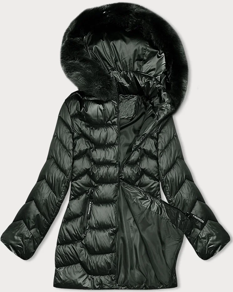 Prošívaná dámská bunda v army barvě s kapucí model 21247417 - S'WEST