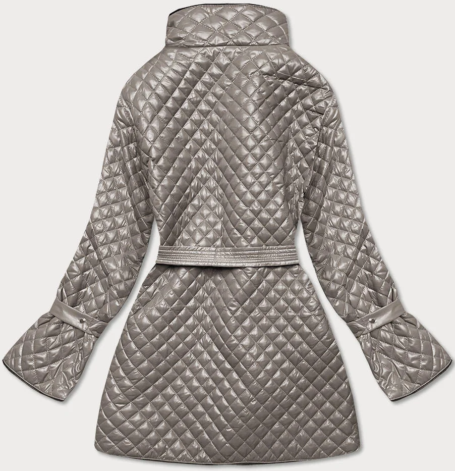 Prošívaná dámská bunda v barvě cappuccino s páskem (7262)
