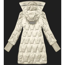 Prošívaná dámská bunda v barvě ecru pro přechodné období s stahovacími lemy model 21479182 - Libland