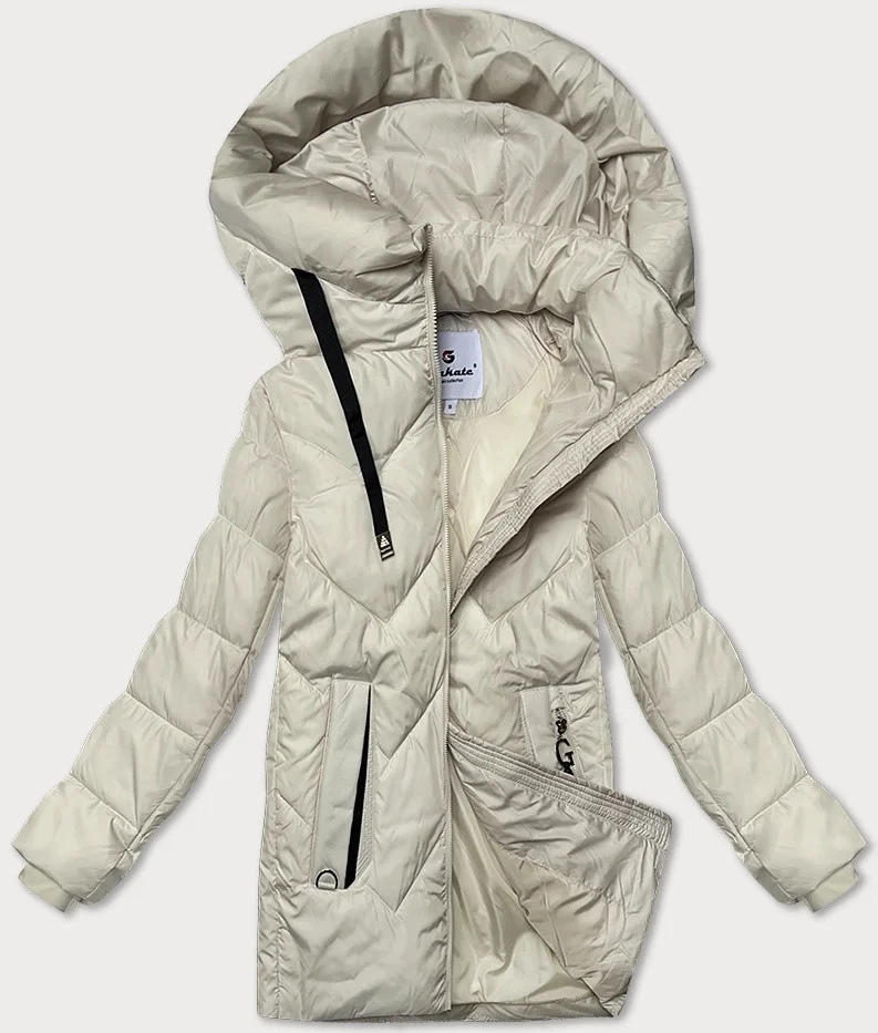 Prošívaná dámská bunda v barvě ecru s kapucí Glakate (LU-24029#)