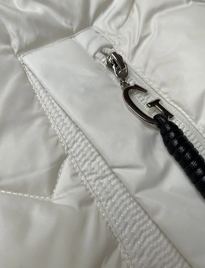 Bunda má jednoduchý střih, je zateplená syntetickou péřovou výplní, má dvě kapsy se zapínáním a zapíná se dvoustranným zipem. Model má kapuci, kterou není možné odepnout. Na koncích rukávů jsou skryté stahovací lemy. Bunda má délku k bokům.