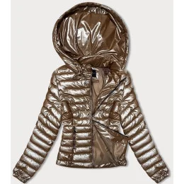 Prošívaná dámská bunda v karamelové barvě s kapucí (16M9106-84)