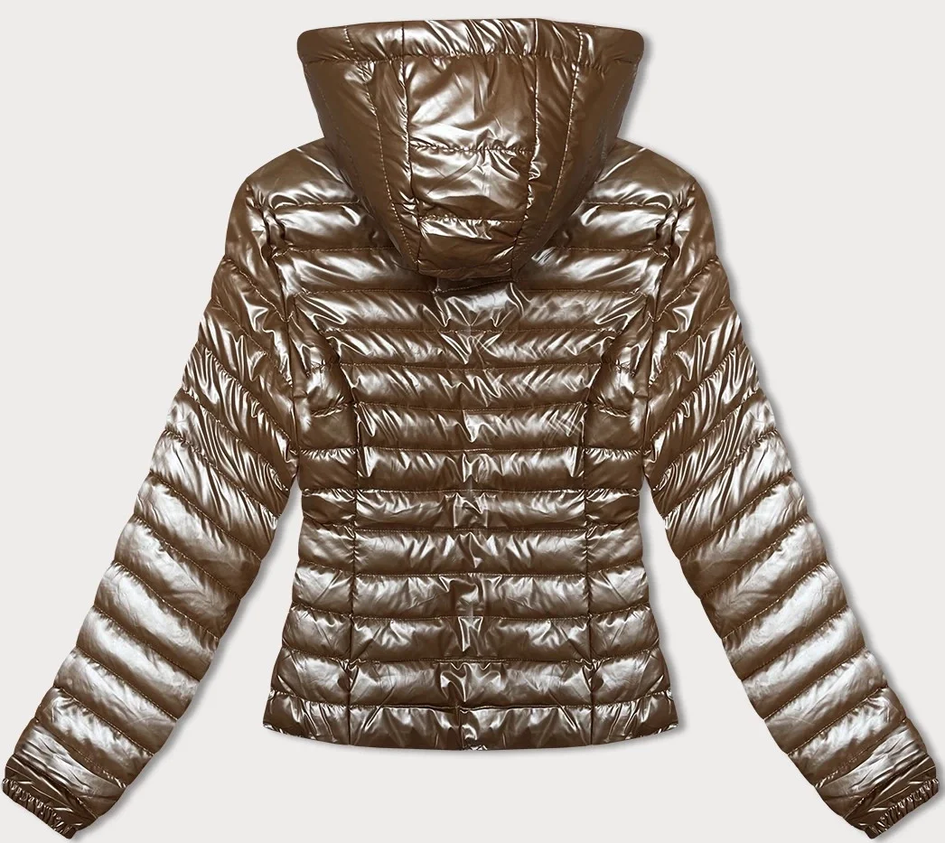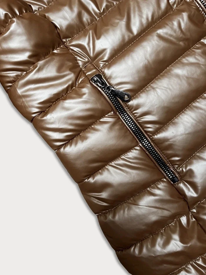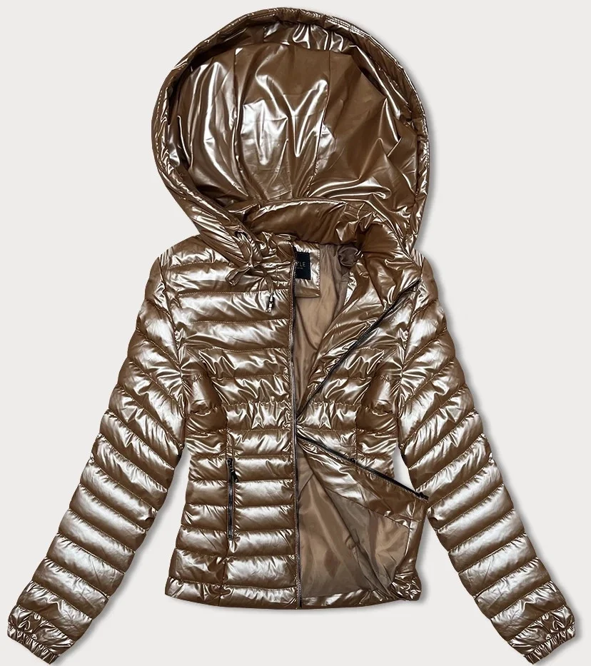 Prošívaná dámská bunda v karamelové barvě s kapucí model 19035374 - J.STYLE
