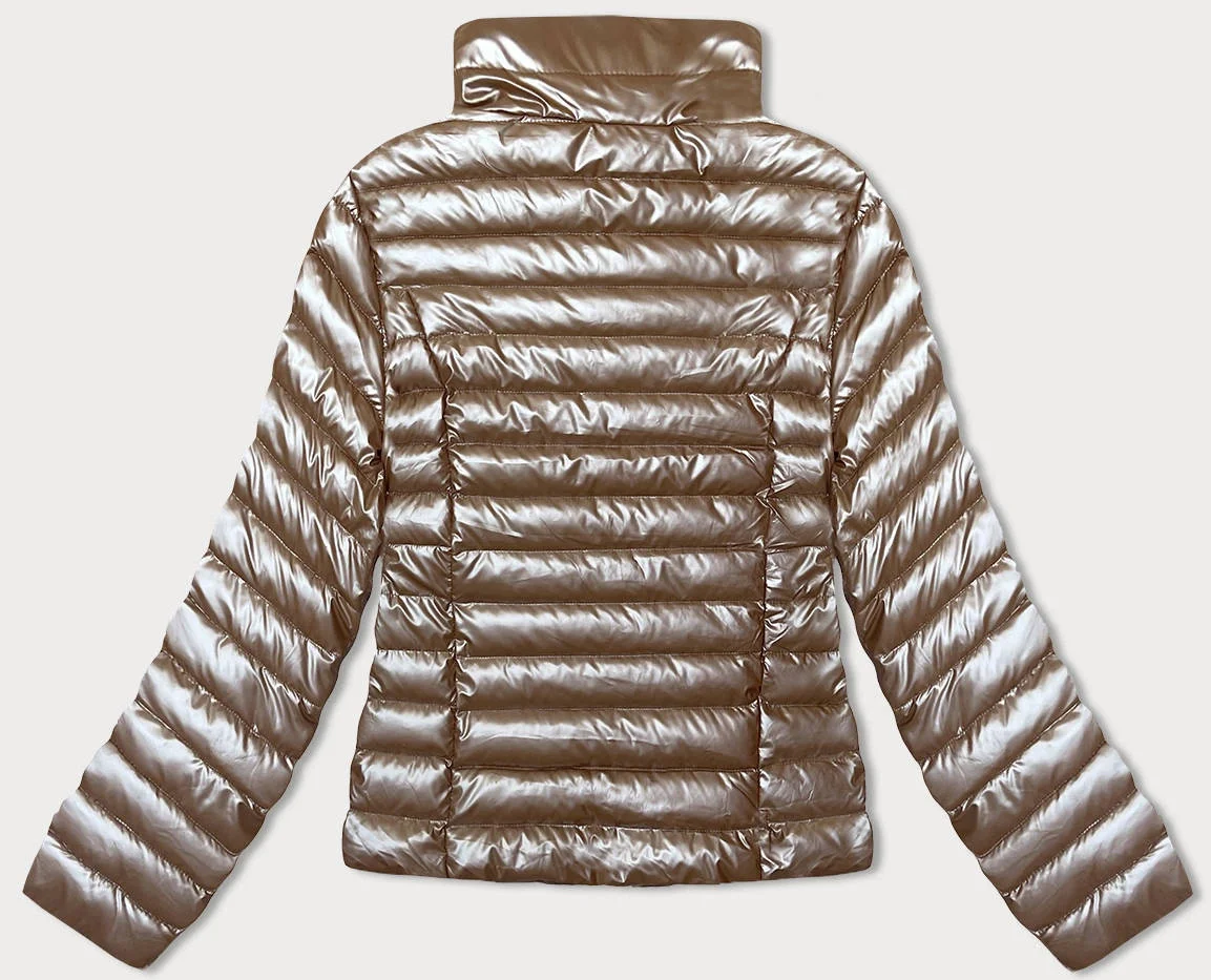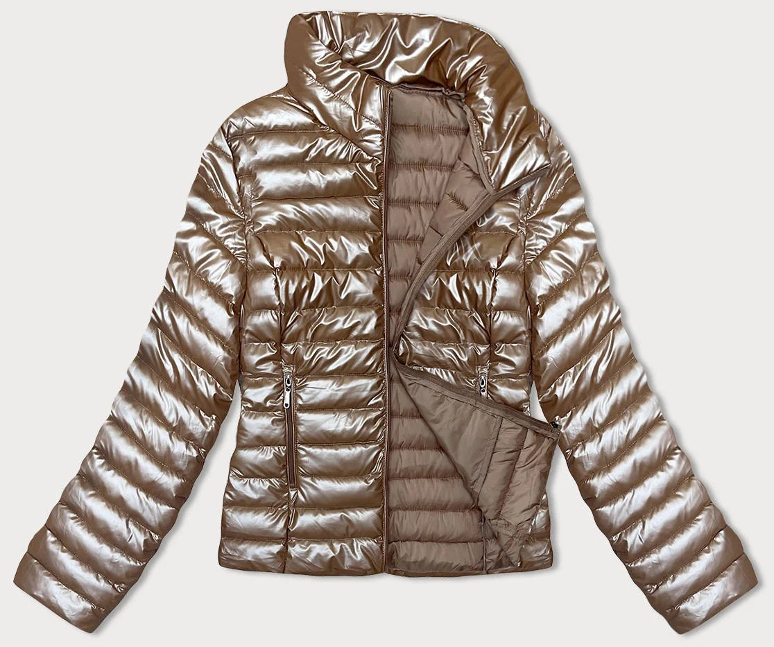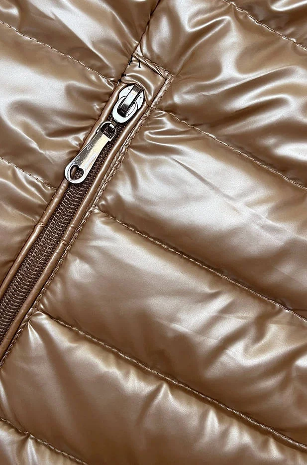 Prošívaná dámská bunda v karamelové barvě se stojáčkem (16M9110-84)