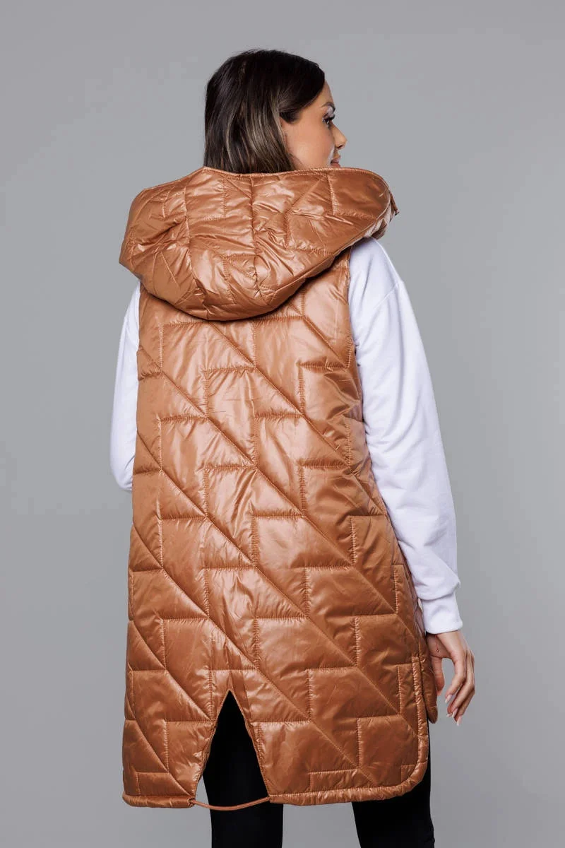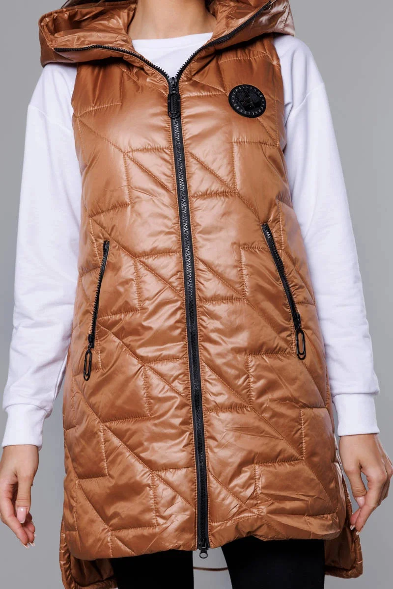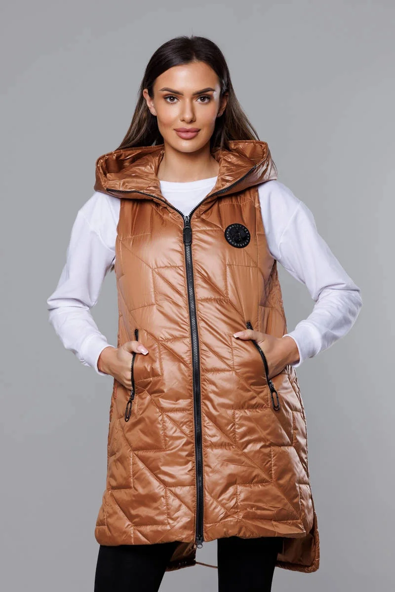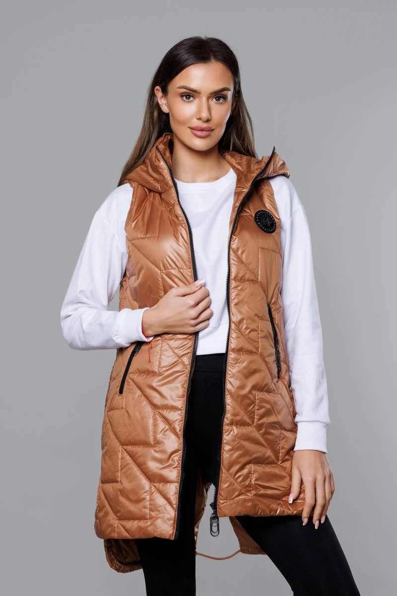 Prošívaná dámská vesta v karamelové barvě (B8127-14)