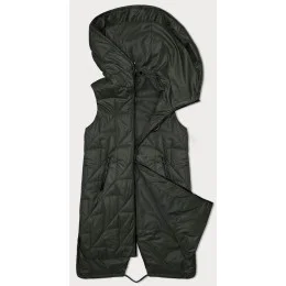 Prošívaná dámská vesta v khaki barvě s asymetrickou spodní částí S'West (B8237-11)