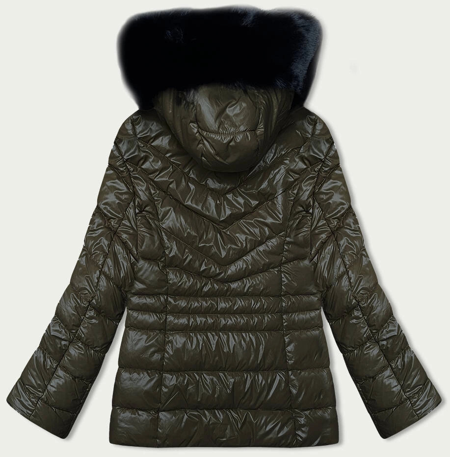 Prošívaná dámská zimní bunda khaki barvě (V775)