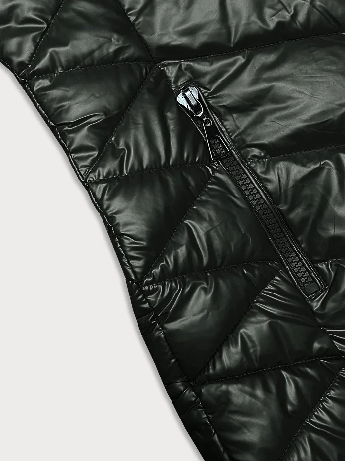 Prošívaná dámská zimní bunda v army barvě model 21246948 - J.STYLE
