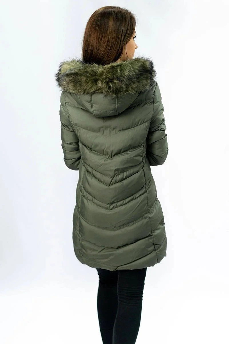 Prošívaná dámská zimní bunda v khaki barvě s kapucí (w749-1)