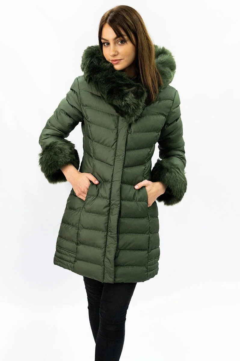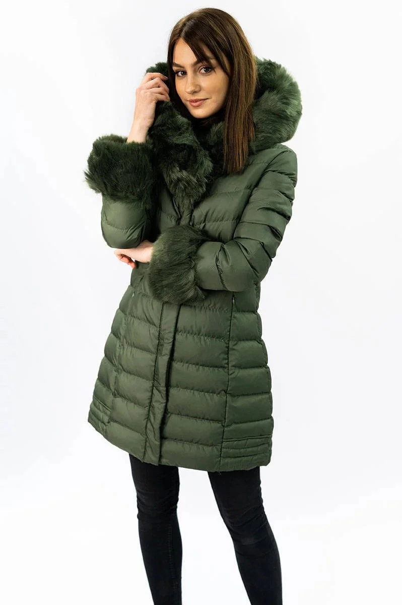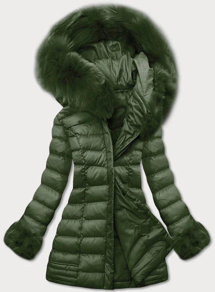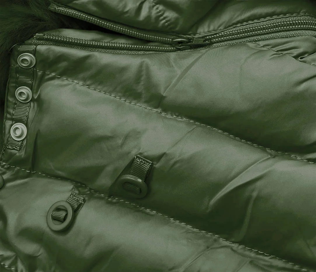 Prošívaná dámská zimní bunda v khaki barvě s kapucí (w750-1)