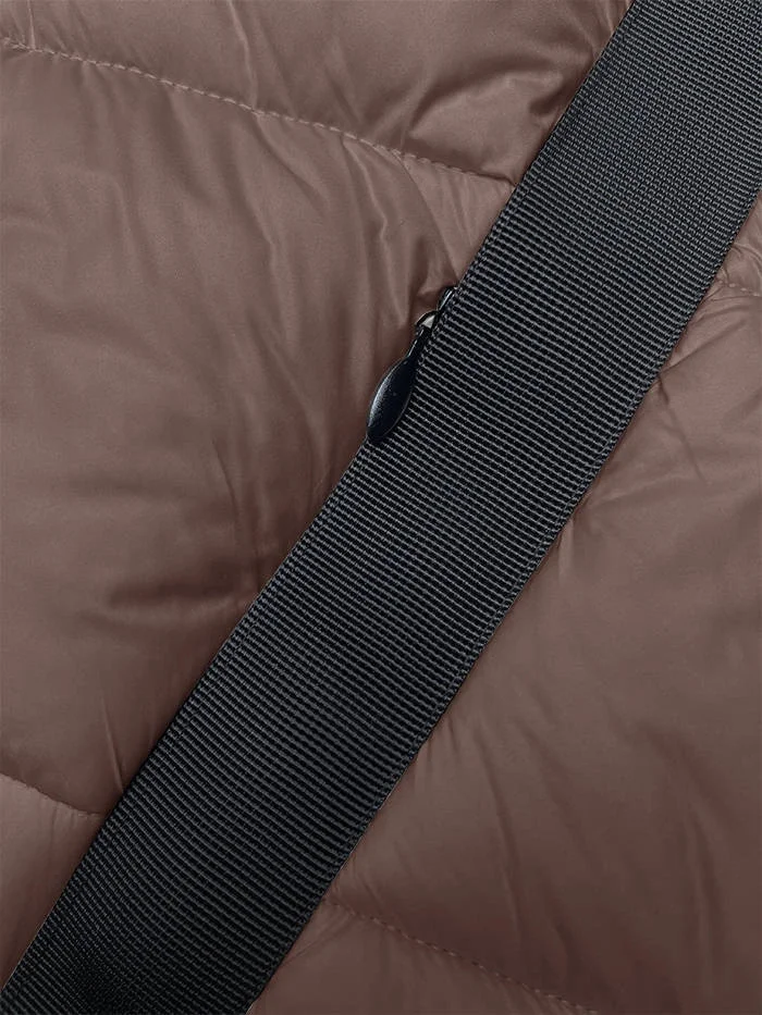Bunda má jednoduchý střih, je zateplená syntetickou péřovou výplní, má dvě kapsy se zapínáním na zip a zapíná se dvousměrným zipem. Model má kapuci, kterou není možné odepnout. Na kocích rukávů jsou gumy. Bunda má délku do poloviny stehen.