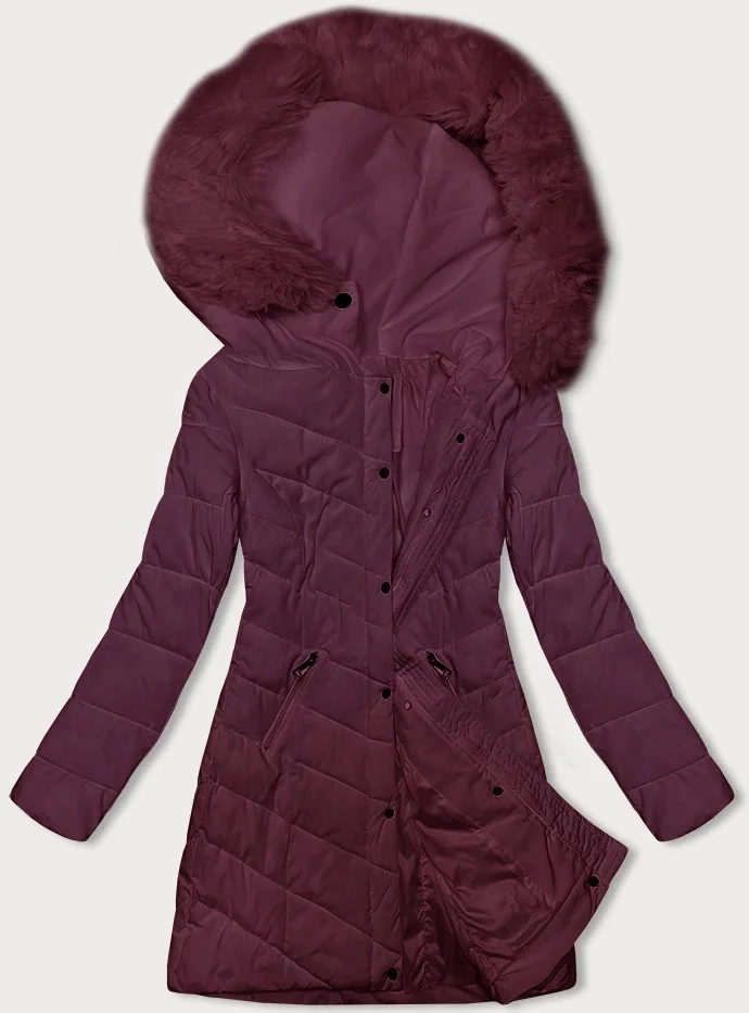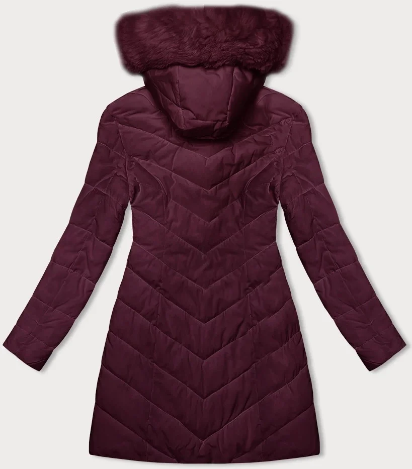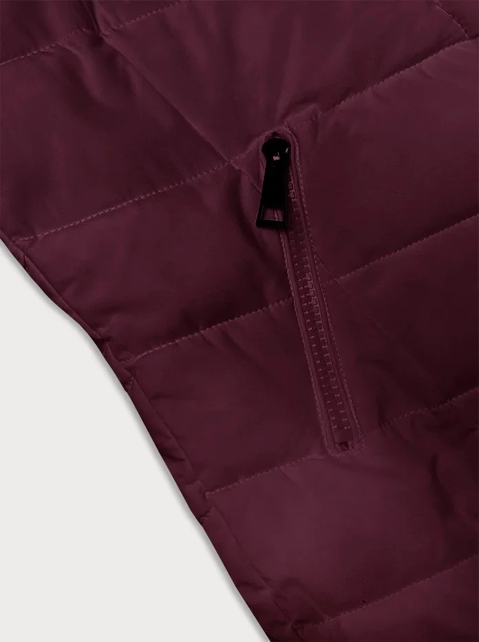 Prošívaná dámská zimní bunda ve vínové bordó barvě s kapucí LHD (2M-057)