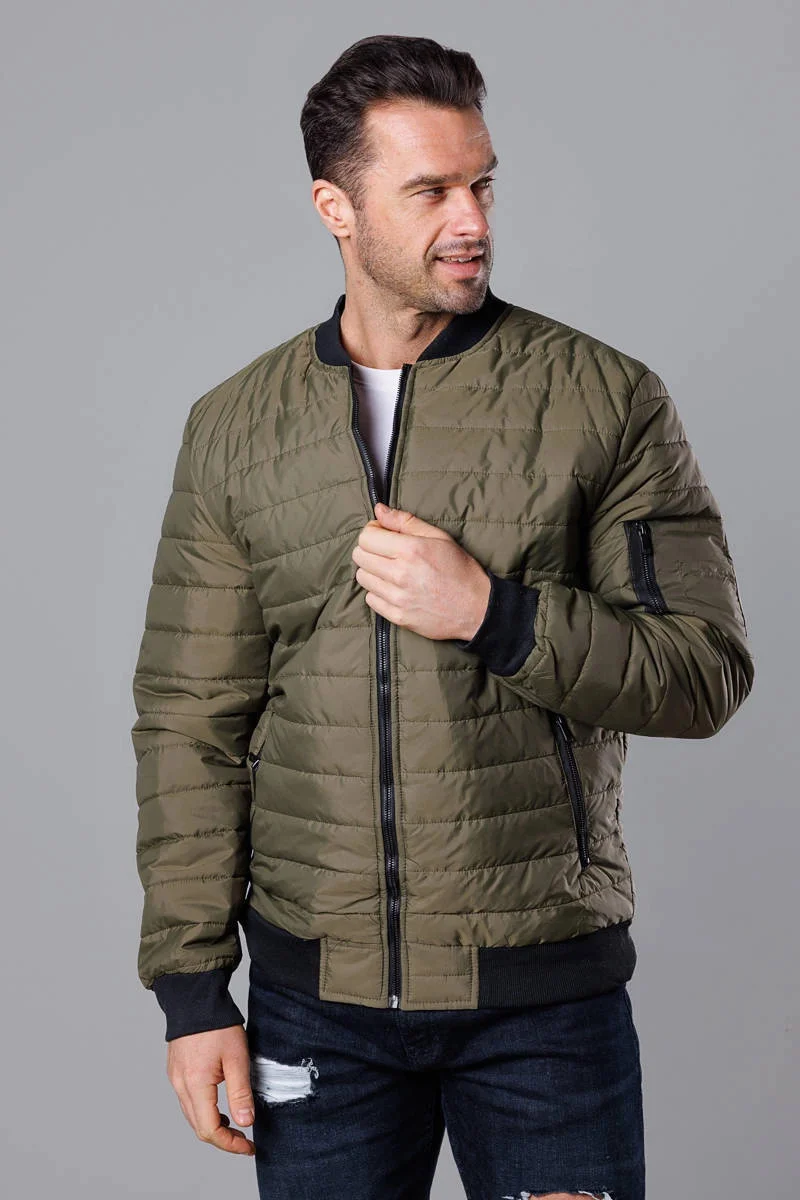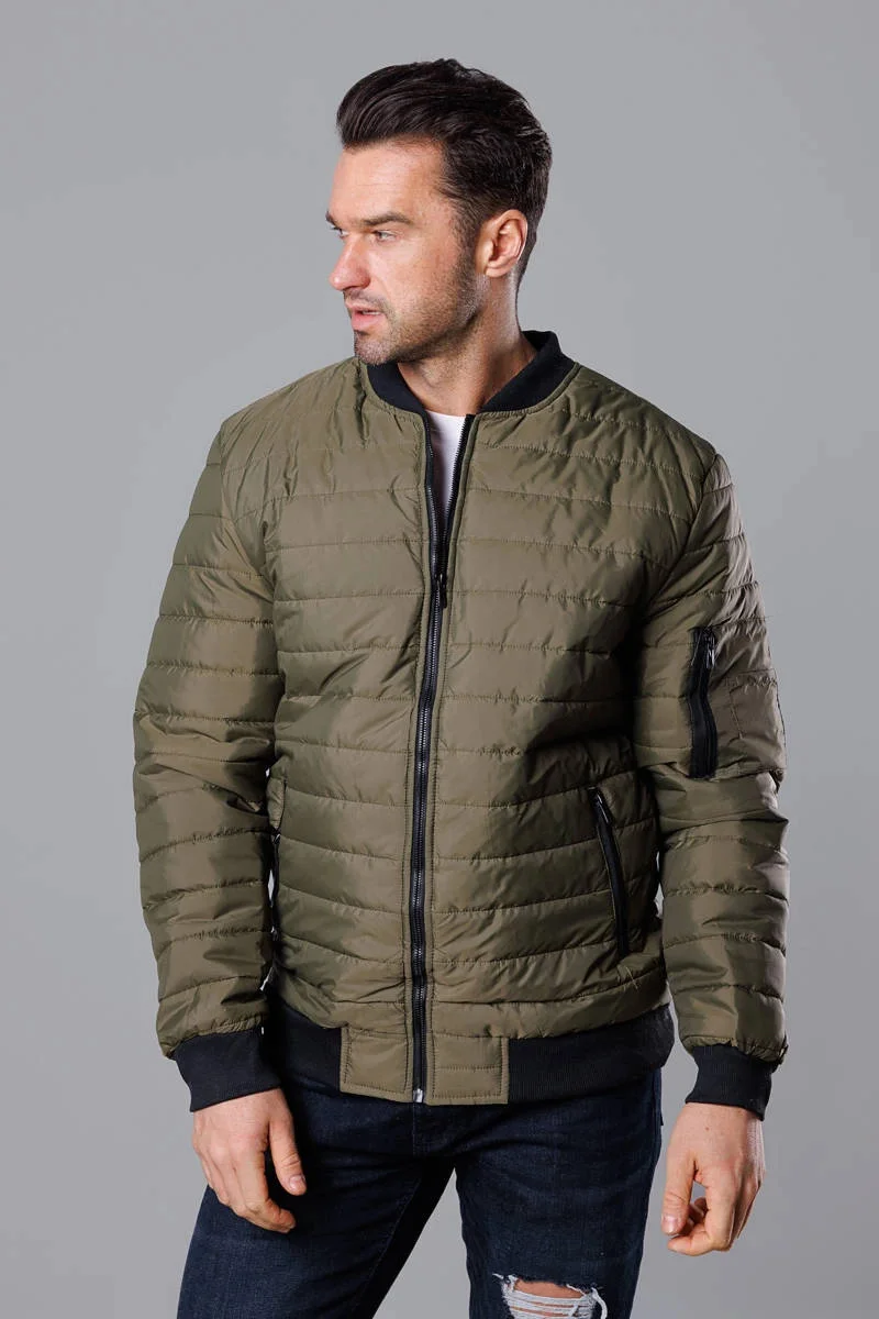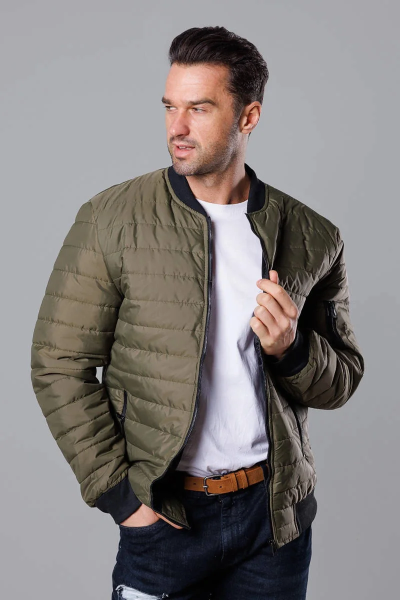 Prošívaná pánská bunda typu "bomber" v khaki barvě (MY02-3)