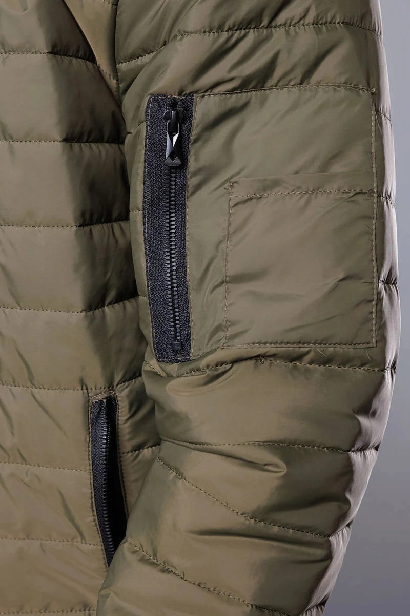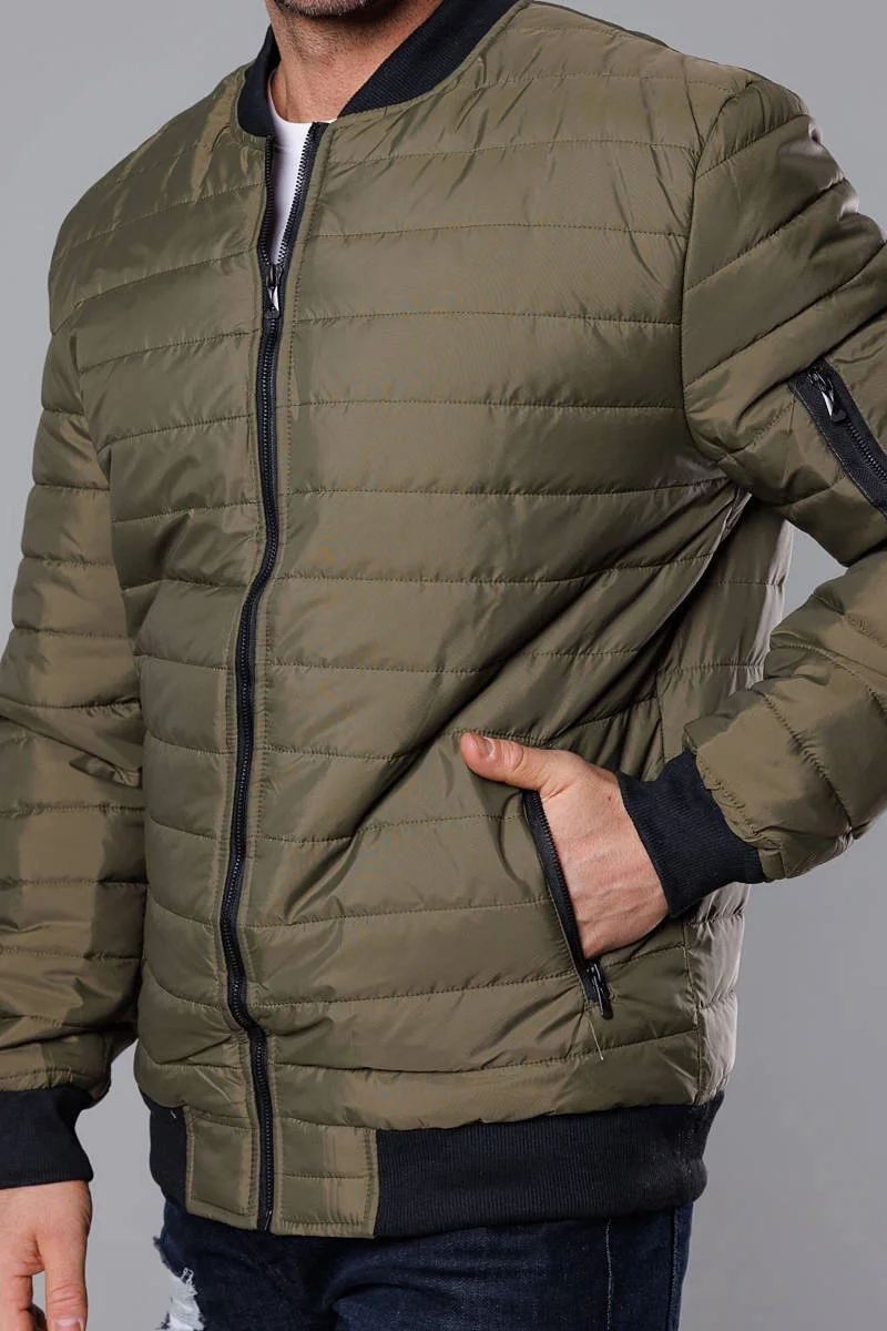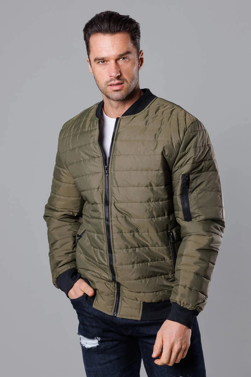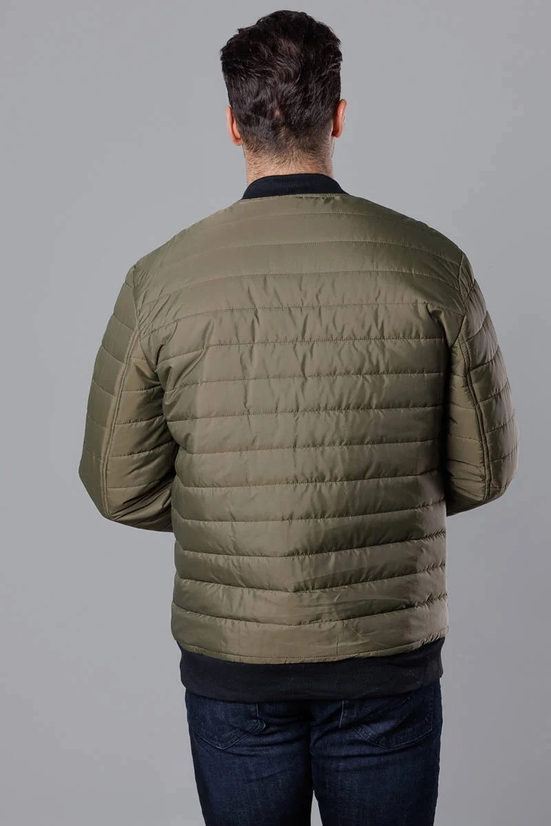 Prošívaná pánská bunda typu "bomber" v khaki barvě (MY02-3)