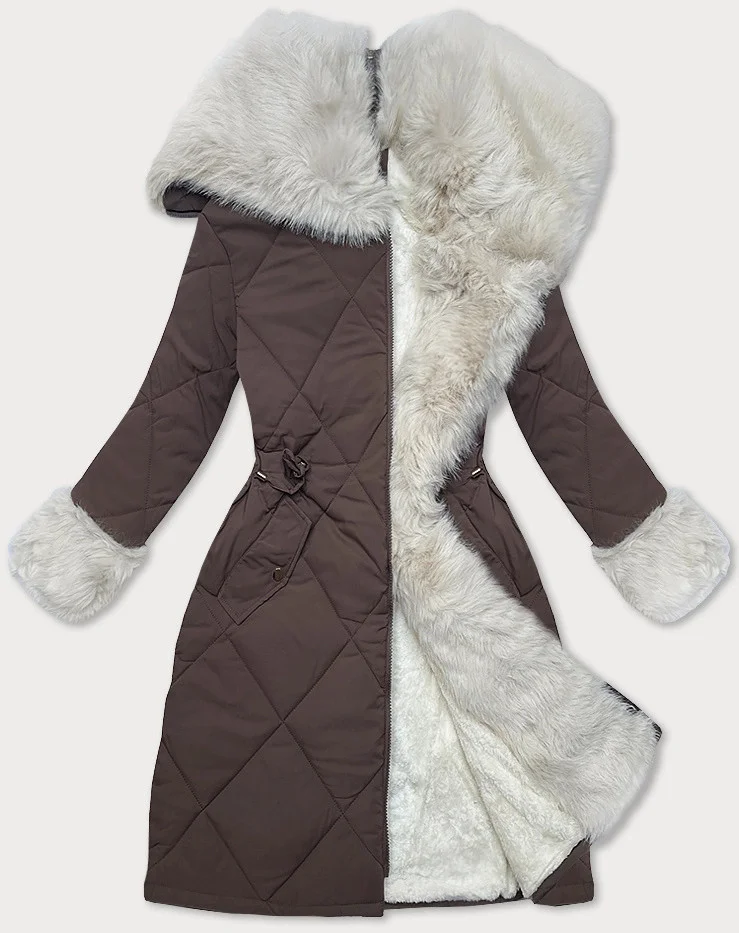 Prošívaná zimní bunda v barvě s kožešinovou podšívkou model 21248860 - WAY MODE