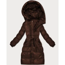 Prošívaná zimní bunda v čokoládové barvě s páskem J Style (5M3253-158)
