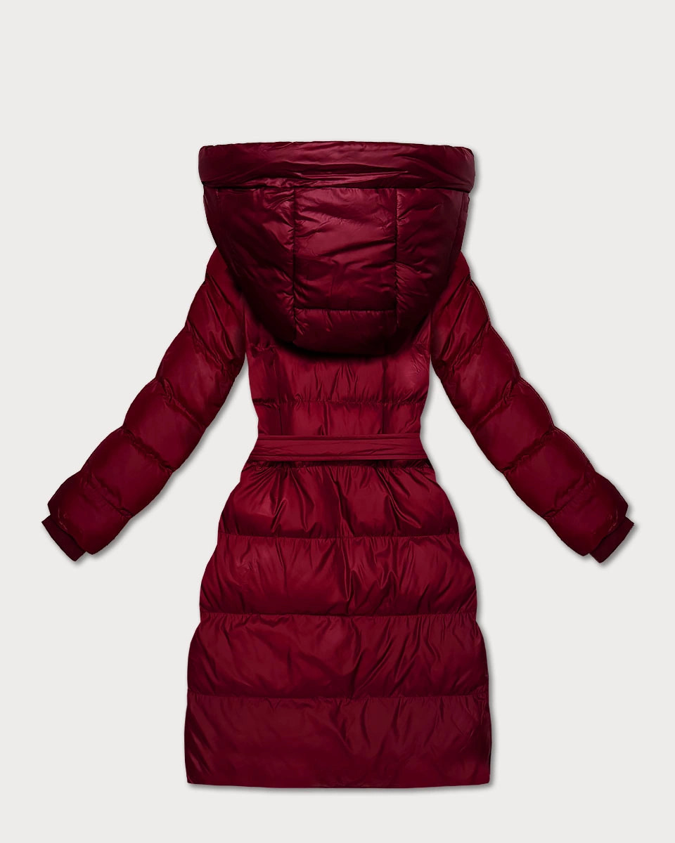 Prošívaná zimní bunda ve vínové bordó barvě s páskem J Style (5M3253-1)