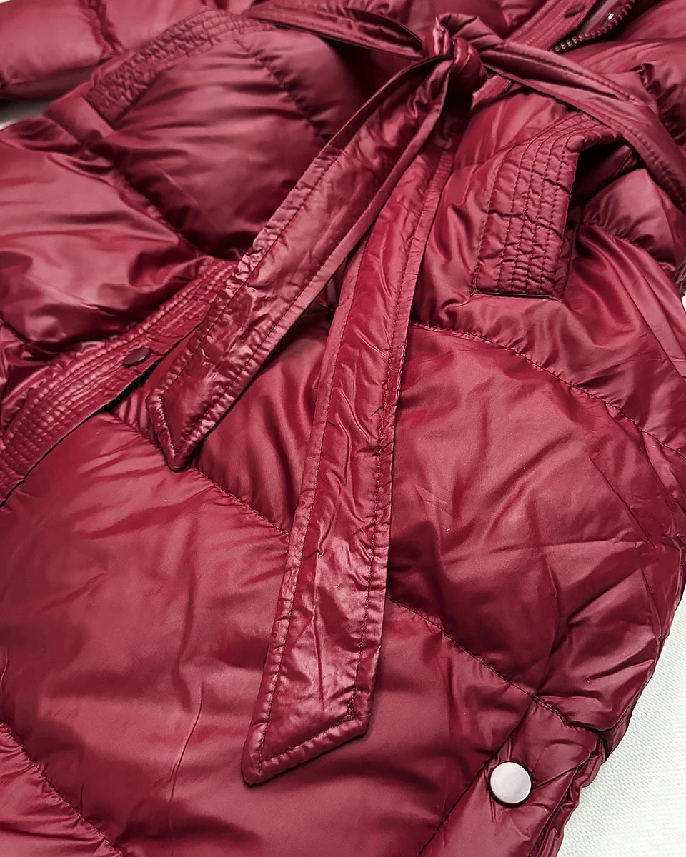 Přidání recenze k Prošívaná zimní bunda ve vínové bordó barvě s páskem J Style (5M3253-1)