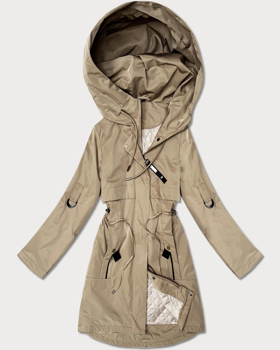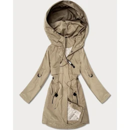 Prosta kurtka damska z podwijanymi rękawami Goodlookin ciemny beżowy (B8556-12)