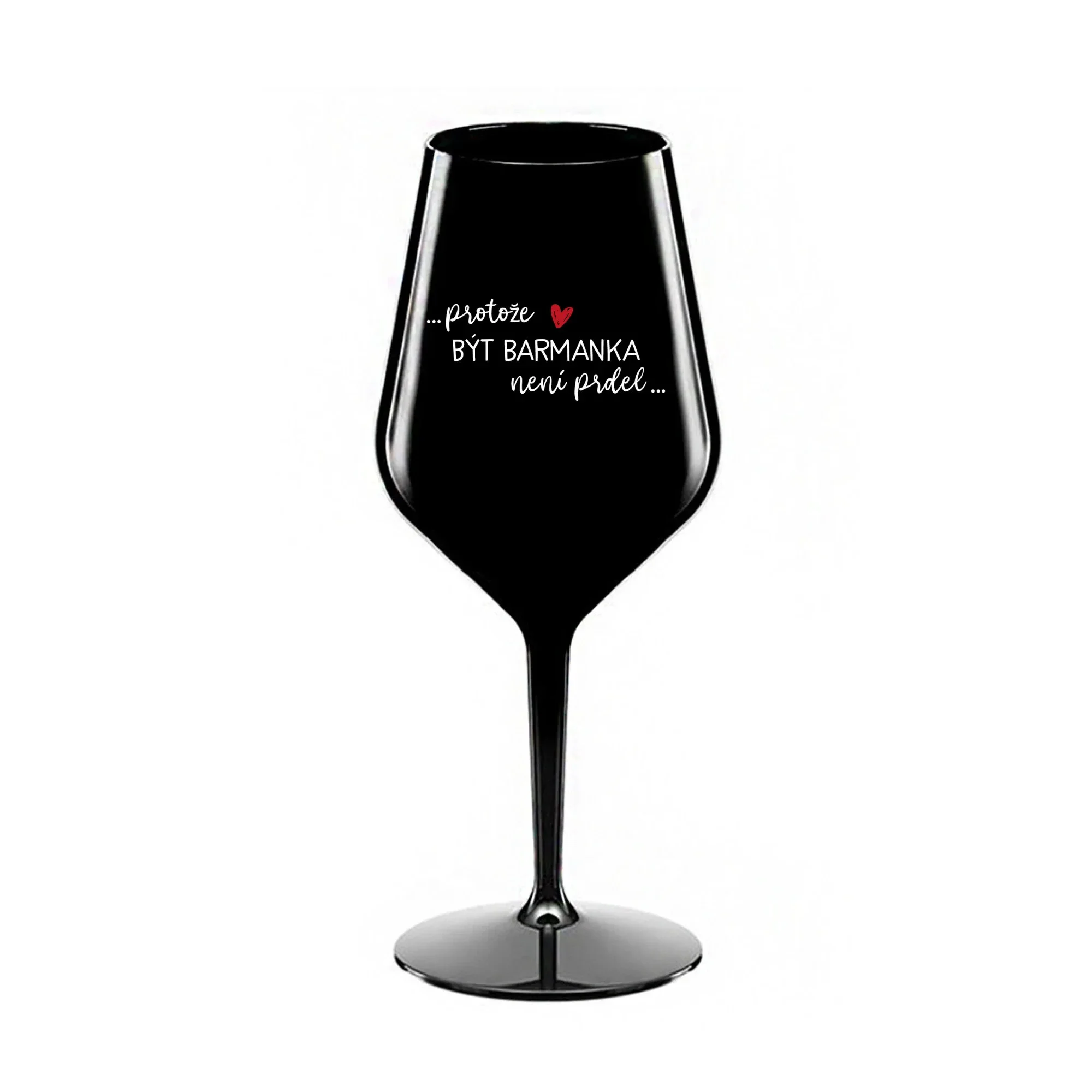 PROTOŽE BÝT BARMANKA NENÍ PRDEL - černá nerozbitná sklenice na víno 470 ml