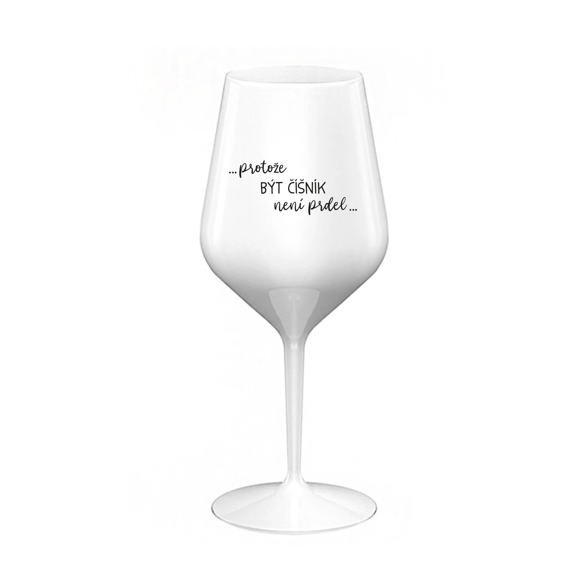 PROTOŽE BÝT ČÍŠNÍK NENÍ PRDEL - bílá nerozbitná sklenice na víno 470 ml