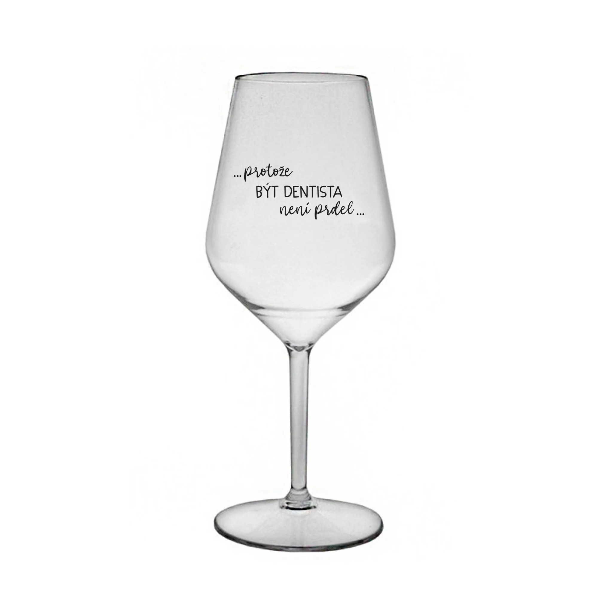 PROTOŽE BÝT DENTISTA NENÍ PRDEL - čirá nerozbitná sklenice na víno 470 ml