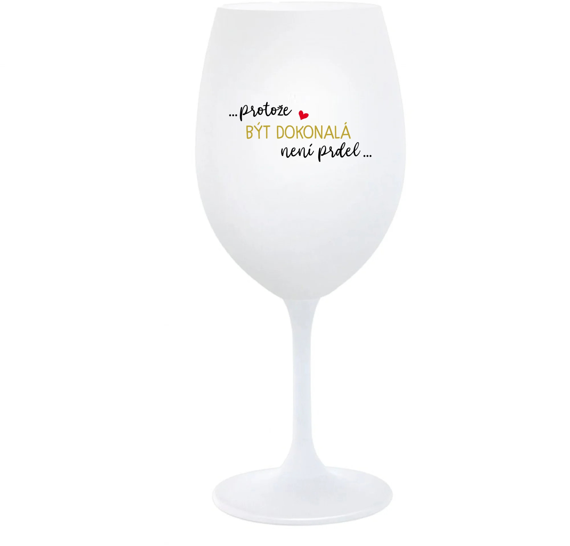 Vinná bílá sklenice s originálním motivem ...PROTOŽE BÝT DOKONALÁ NENÍ PRDEL... je krásným a osobitým dárkem, které ale využijete i Vy sami třeba ve chvílích, kdy si budete chtít zpříjemnit náročný den. Tyto originální vinné sklenice jsou totiž nejen pro výjimečné události, ale i pro běžné večery, které si chcete zpříjemnit sklenkou dobrého vína. Jistě proto potěší každého milovníka vína, i toho, kdo si umí svůj život vychutnat plnými doušky.