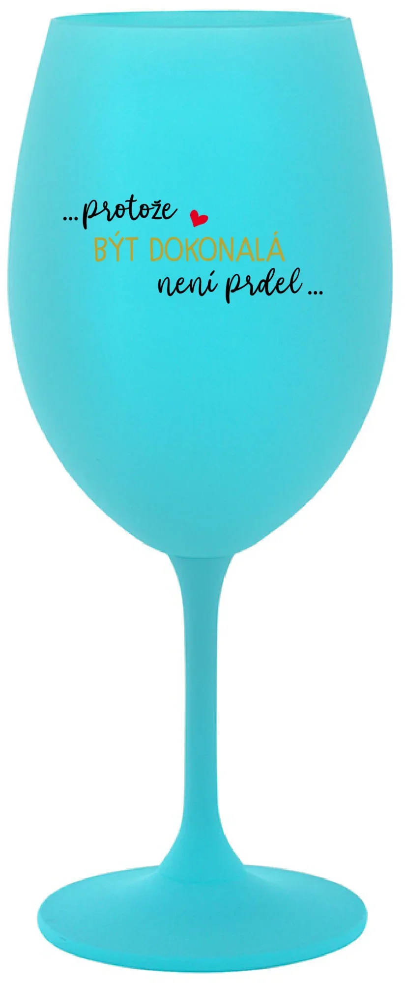 Vinná tyrkysová sklenice s originálním motivem ...PROTOŽE BÝT DOKONALÁ NENÍ PRDEL... je krásným a osobitým dárkem, které ale využijete i Vy sami třeba ve chvílích, kdy si budete chtít zpříjemnit náročný den. Tyto originální vinné sklenice jsou totiž nejen pro výjimečné události, ale i pro běžné večery, které si chcete zpříjemnit sklenkou dobrého vína. Jistě proto potěší každého milovníka vína, i toho, kdo si umí svůj život vychutnat plnými doušky.