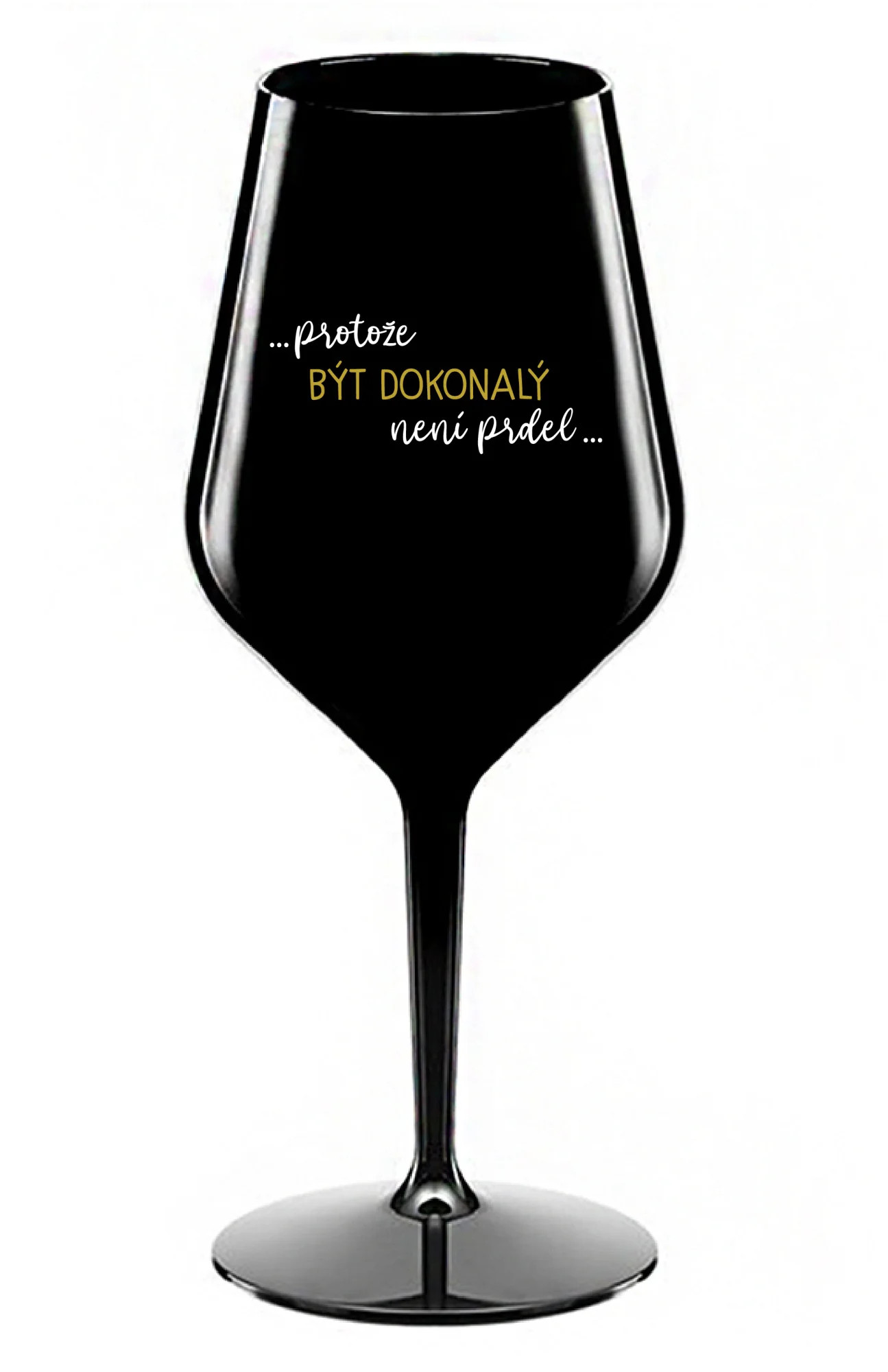 ...PROTOŽE BÝT DOKONALÝ NENÍ PRDEL... - černá nerozbitná sklenice na víno 470 ml