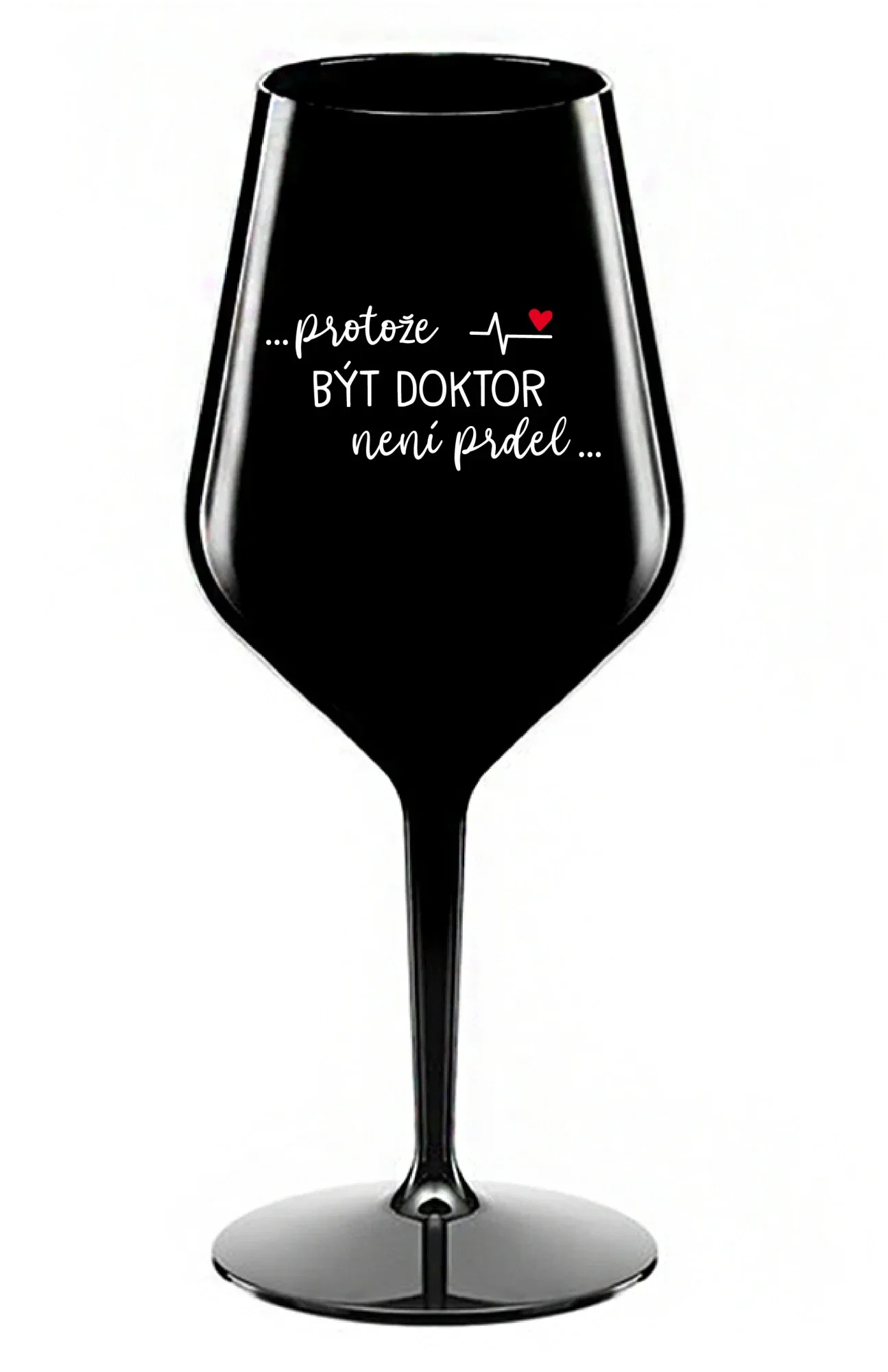 ...PROTOŽE BÝT DOKTOR NENÍ PRDEL... - černá nerozbitná sklenice na víno 470 ml