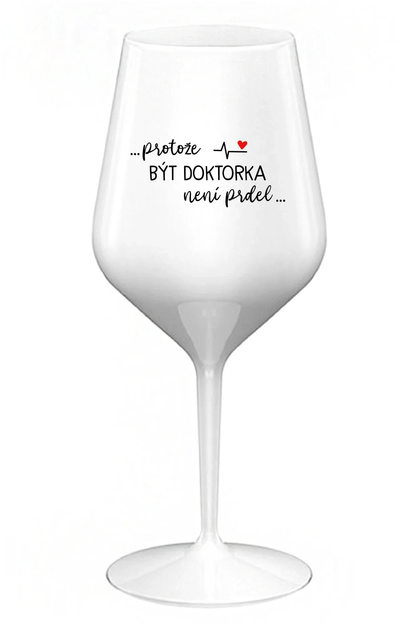 ...PROTOŽE BÝT DOKTORKA NENÍ PRDEL... - bílá nerozbitná sklenice na víno 470 ml
