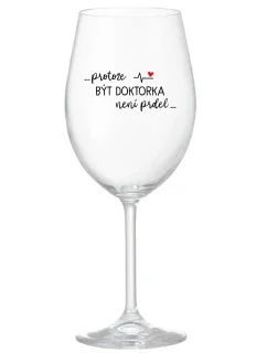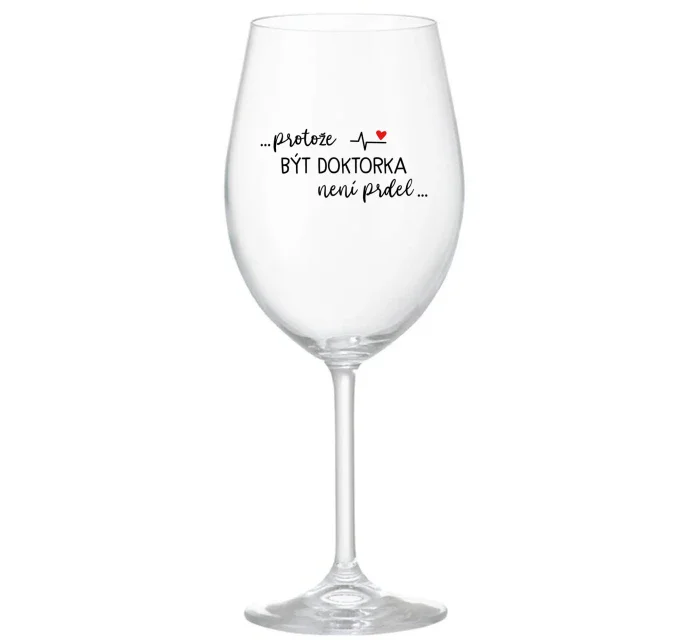 Vinná čirá sklenice s originálním motivem ...PROTOŽE BÝT DOKTORKA NENÍ PRDEL... je krásným a osobitým dárkem, které ale využijete i Vy sami třeba ve chvílích, kdy si budete chtít zpříjemnit náročný den. Tyto originální vinné sklenice jsou totiž nejen pro výjimečné události, ale i pro běžné večery, které si chcete zpříjemnit sklenkou dobrého vína. Jistě proto potěší každého milovníka vína, i toho, kdo si umí svůj život vychutnat plnými doušky.