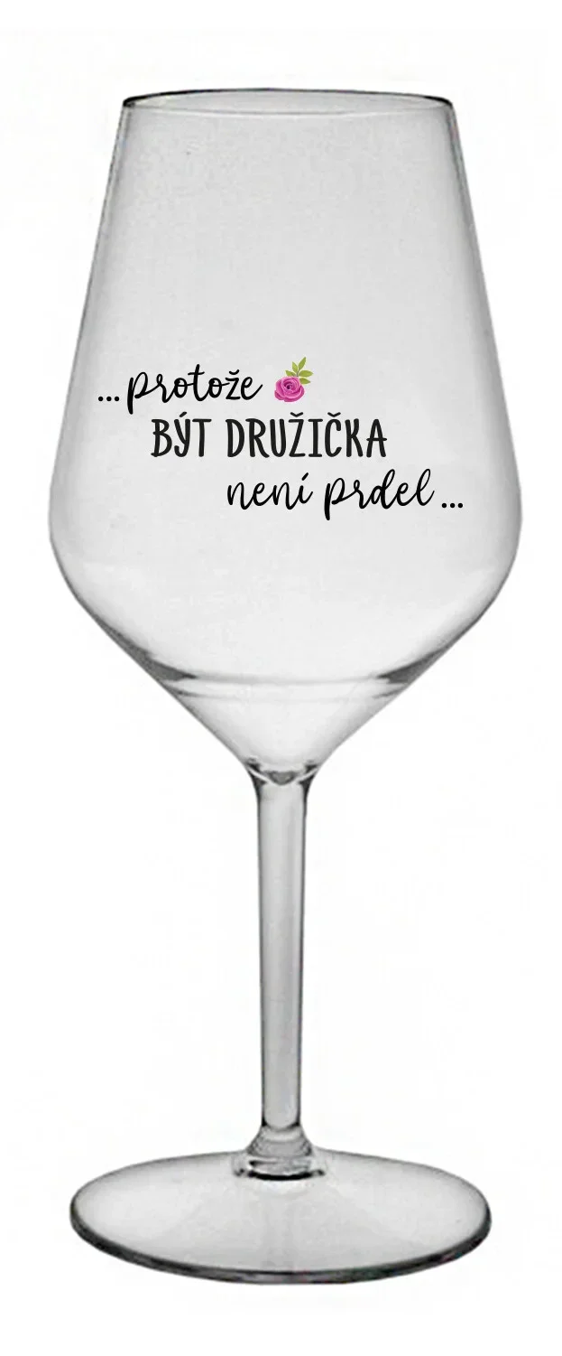 ...PROTOŽE BÝT DRUŽIČKA NENÍ PRDEL... - čirá nerozbitná sklenice na víno 470 ml