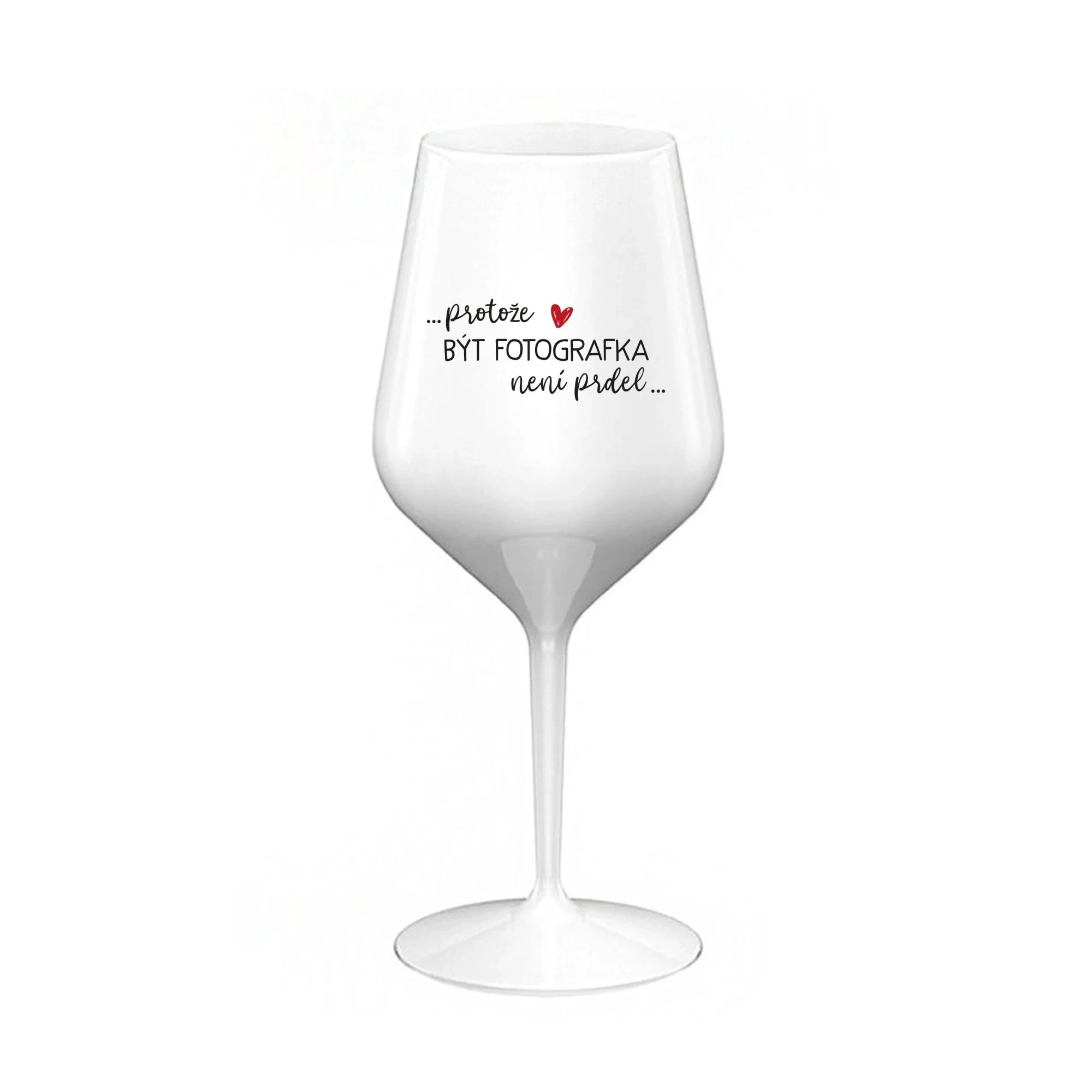 PROTOŽE BÝT FOTOGRAFKA NENÍ PRDEL - bílá nerozbitná sklenice na víno 470 ml