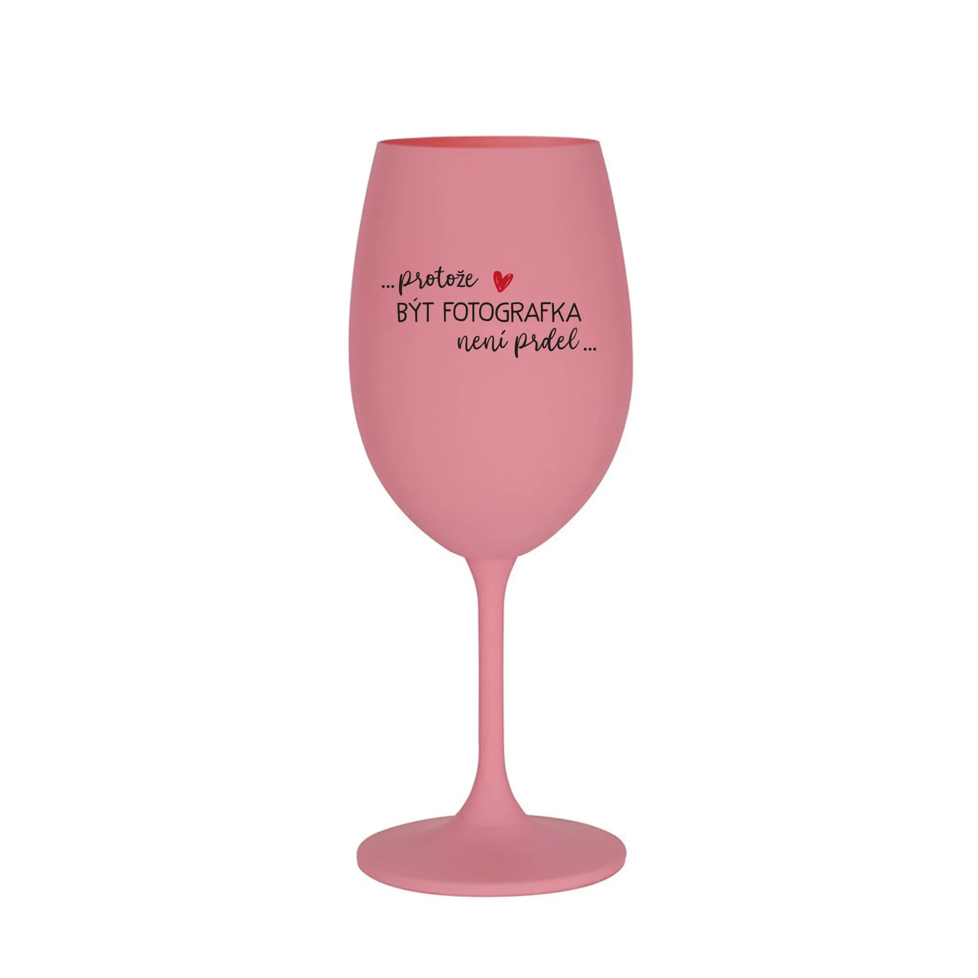 PROTOŽE BÝT FOTOGRAFKA NENÍ PRDEL - růžová sklenice na víno 350 ml