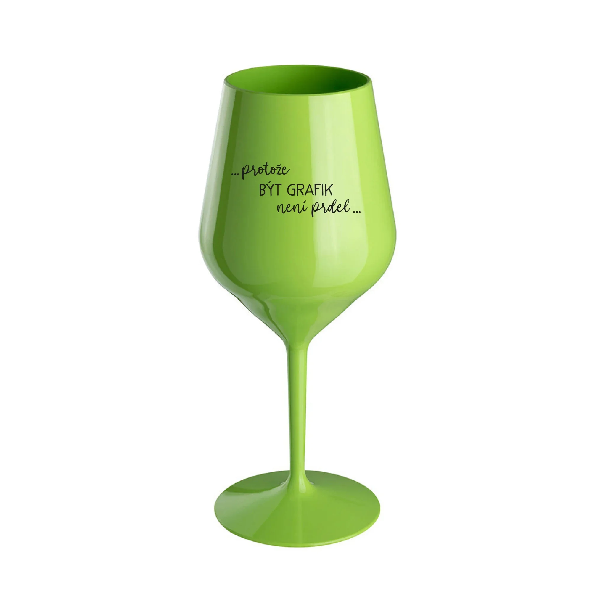 PROTOŽE BÝT GRAFIK NENÍ PRDEL - zelená nerozbitná sklenice na víno 470 ml
