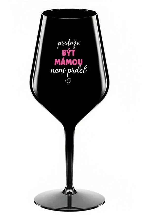 PROTOŽE BÝT MÁMOU NENÍ PRDEL - černá nerozbitná sklenice na víno 470 ml