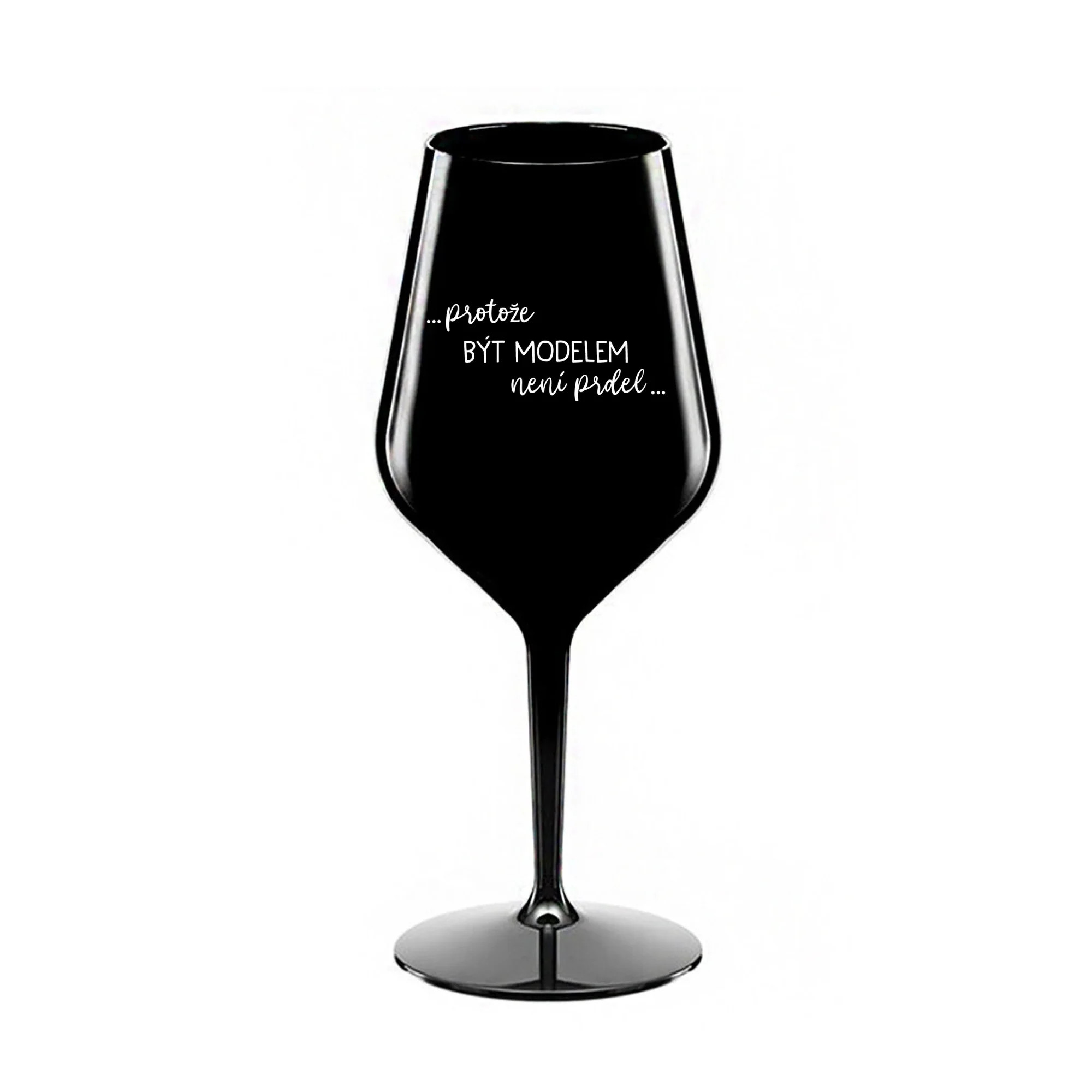 PROTOŽE BÝT MODELEM NENÍ PRDEL - černá nerozbitná sklenice na víno 470 ml