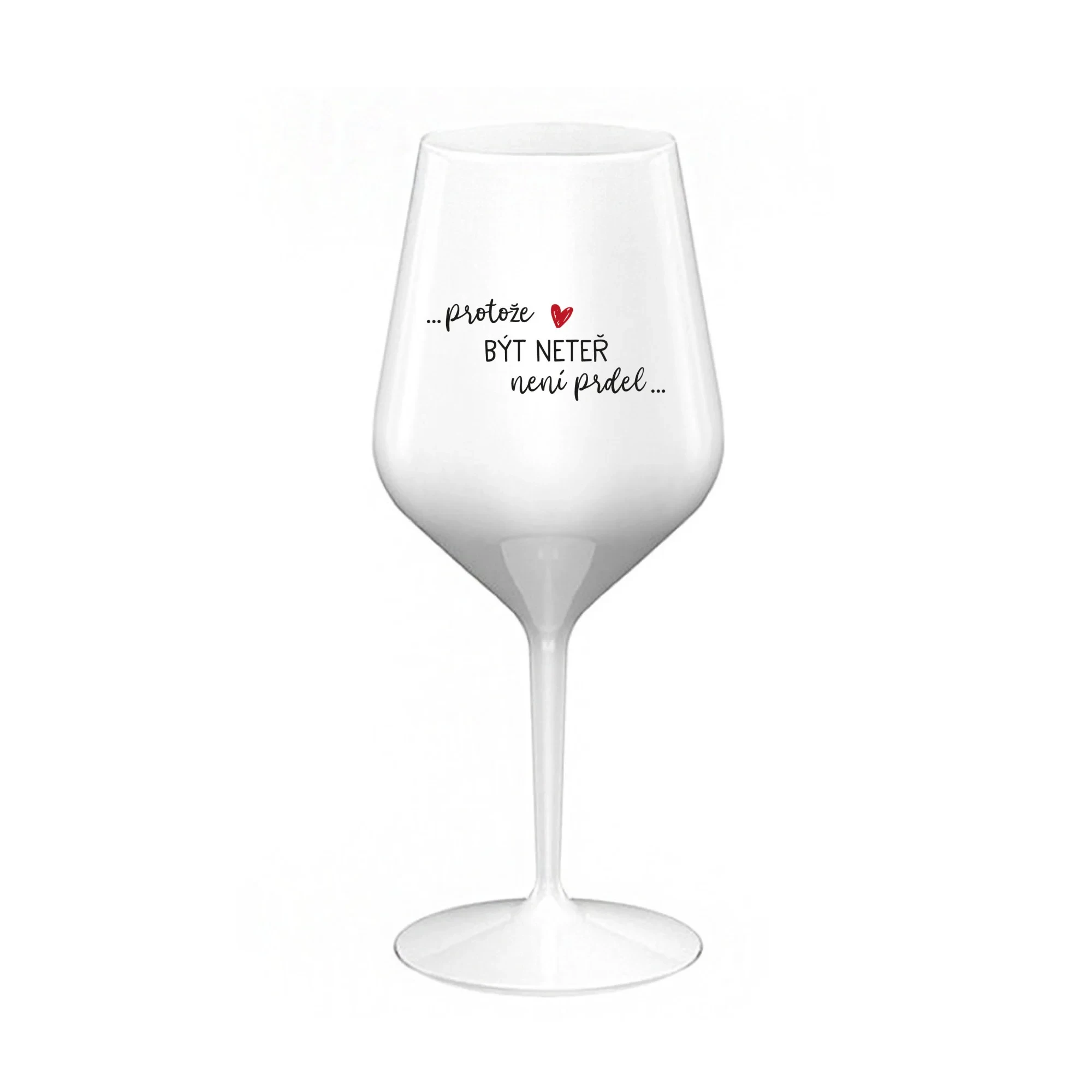 PROTOŽE BÝT NETEŘ NENÍ PRDEL - bílá nerozbitná sklenice na víno 470 ml