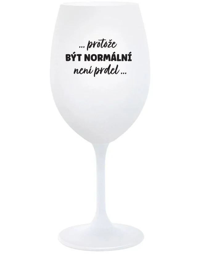 Vinná bílá sklenice s originálním motivem ...PROTOŽE BÝT NORMÁLNÍ NENÍ PRDEL... je krásným a osobitým dárkem, které ale využijete i Vy sami třeba ve chvílích, kdy si budete chtít zpříjemnit náročný den. Tyto originální vinné sklenice jsou totiž nejen pro výjimečné události, ale i pro běžné večery, které si chcete zpříjemnit sklenkou dobrého vína. Jistě proto potěší každého milovníka vína, i toho, kdo si umí svůj život vychutnat plnými doušky.