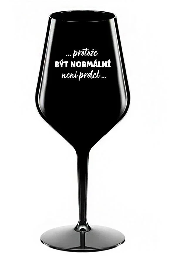 ...PROTOŽE BÝT NORMÁLNÍ NENÍ PRDEL... - černá nerozbitná sklenice na víno 470 ml