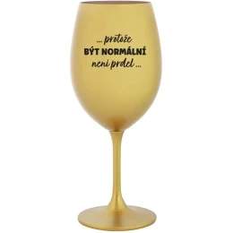 Vinná zlatá sklenice s originálním motivem ...PROTOŽE BÝT NORMÁLNÍ NENÍ PRDEL... je krásným a osobitým dárkem, které ale využijete i Vy sami třeba ve chvílích, kdy si budete chtít zpříjemnit náročný den. Tyto originální vinné sklenice jsou totiž nejen pro výjimečné události, ale i pro běžné večery, které si chcete zpříjemnit sklenkou dobrého vína. Jistě proto potěší každého milovníka vína, i toho, kdo si umí svůj život vychutnat plnými doušky.