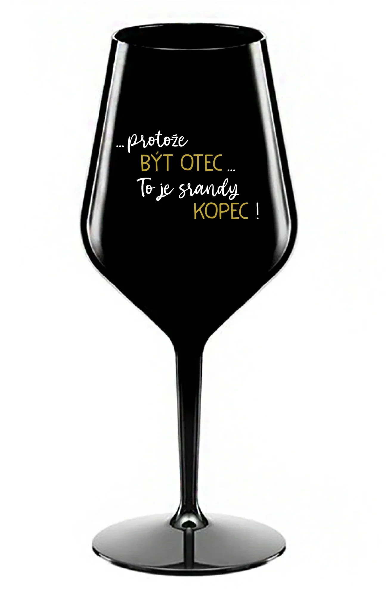 ...PROTOŽE BÝT OTEC...TO JE SRANDY KOPEC! - černá nerozbitná sklenice na víno 470 ml