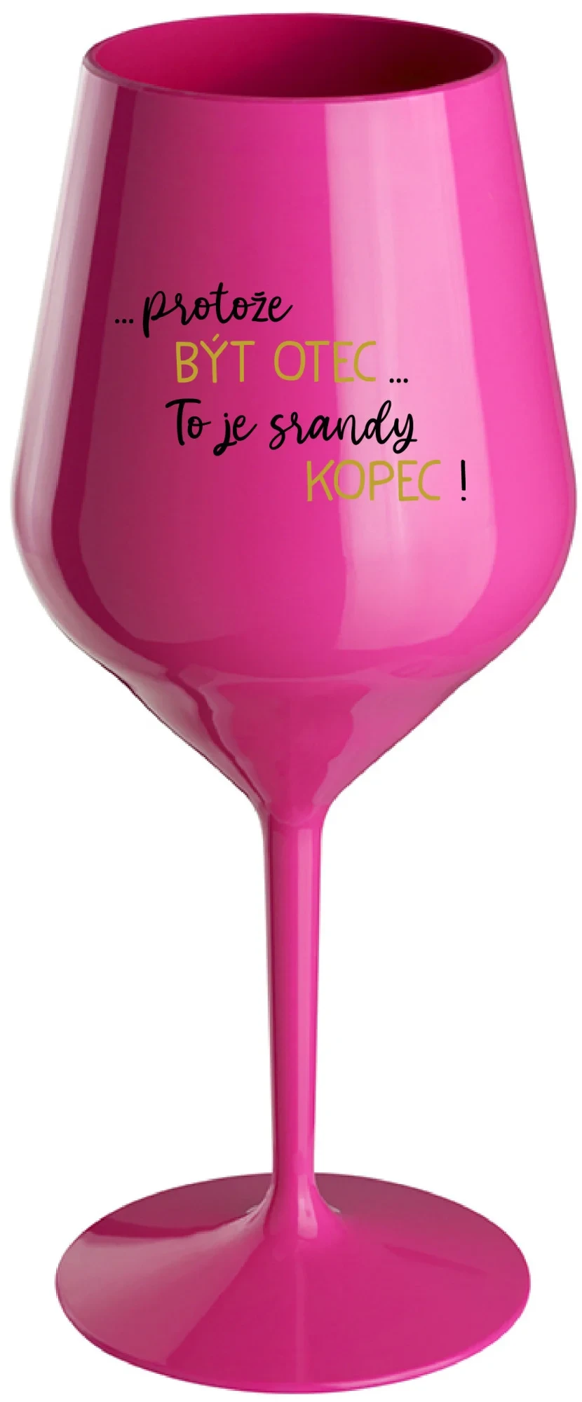 ...PROTOŽE BÝT OTEC...TO JE SRANDY KOPEC! - růžová nerozbitná sklenice na víno 470 ml