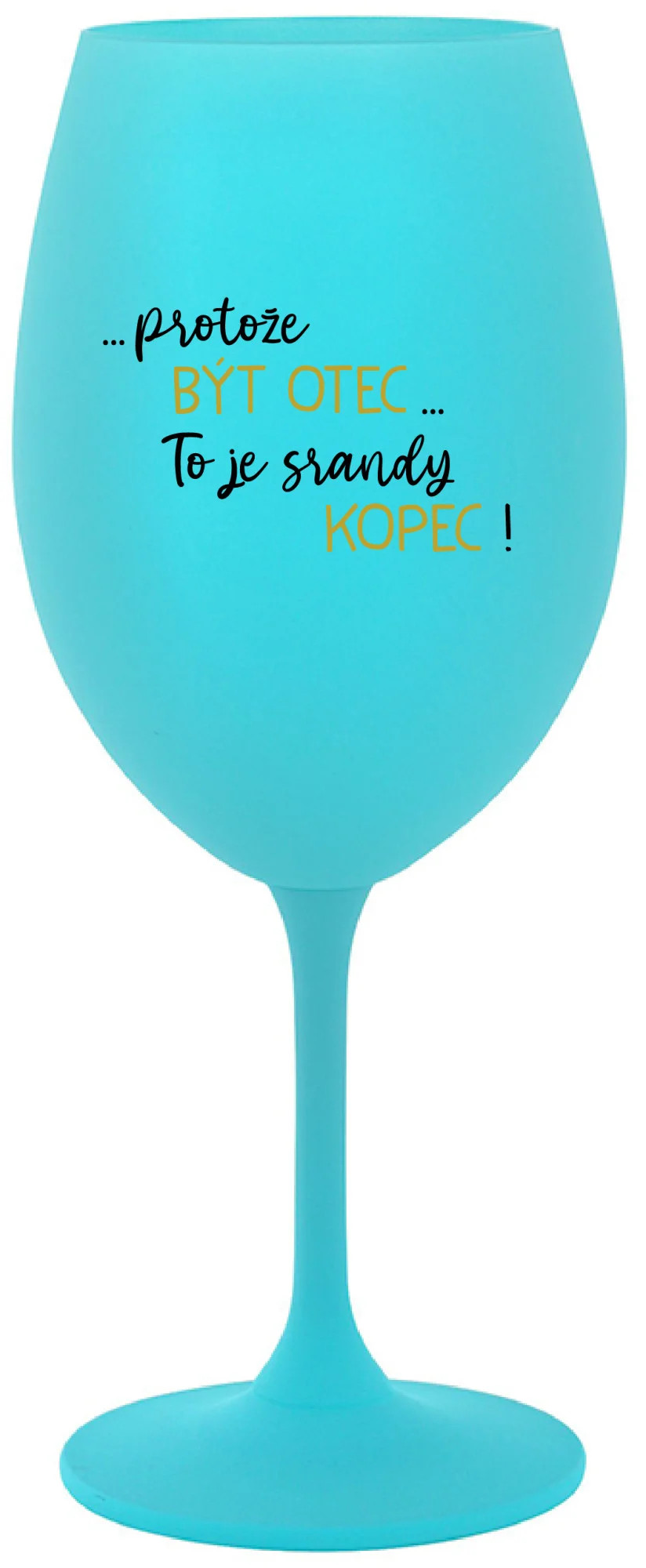 Vinná tyrkysová sklenice s originálním motivem ...PROTOŽE BÝT OTEC...TO JE SRANDY KOPEC! je krásným a osobitým dárkem, které ale využijete i Vy sami třeba ve chvílích, kdy si budete chtít zpříjemnit náročný den. Tyto originální vinné sklenice jsou totiž nejen pro výjimečné události, ale i pro běžné večery, které si chcete zpříjemnit sklenkou dobrého vína. Jistě proto potěší každého milovníka vína, i toho, kdo si umí svůj život vychutnat plnými doušky.