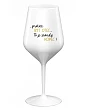 Nerozbitná žlutá vinná sklenice s motivem ...PROTOŽE BÝT OTEC...TO JE SRANDY KOPEC! je skvělá na zahradu, pláž, výlet, piknik a parádu udělá i při kempování. Jelikož je vyrobená z kvalitního polykarbonátu je de facto nerozbitná. Je to luxusní kousek, s nímž si víno můžete vychutnat prostě kdekoliv. Mají ergonomický tvar, který příjemně padne do ruky a protože je lehká, usnadňuje to její přenášení. Je snadno skladovatelná a lehce se čistí. Díky svému designu si s ní můžete vychutnat doopravdy kdekoliv bezproblémové pití výborného vína.