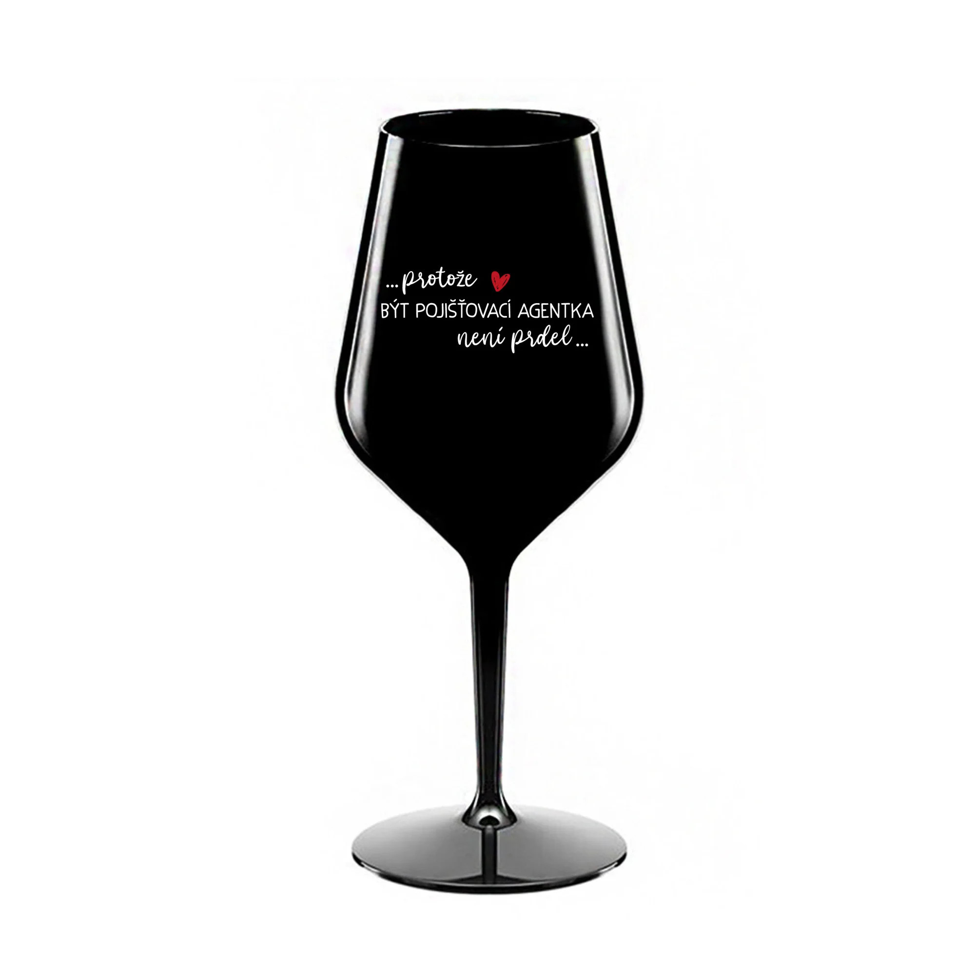 PROTOŽE BÝT POJIŠŤOVACÍ AGENTKA NENÍ PRDEL - černá nerozbitná sklenice na víno 470 ml