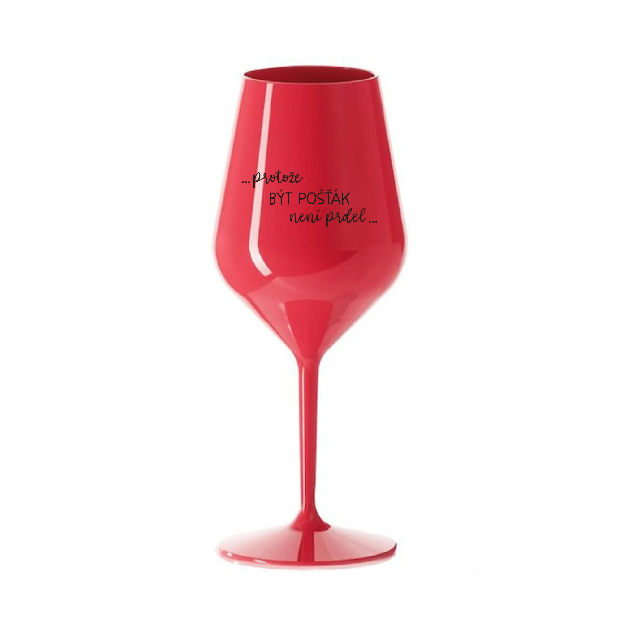 PROTOŽE BÝT POŠŤÁKEM NENÍ PRDEL - červená nerozbitná sklenice na víno 470 ml