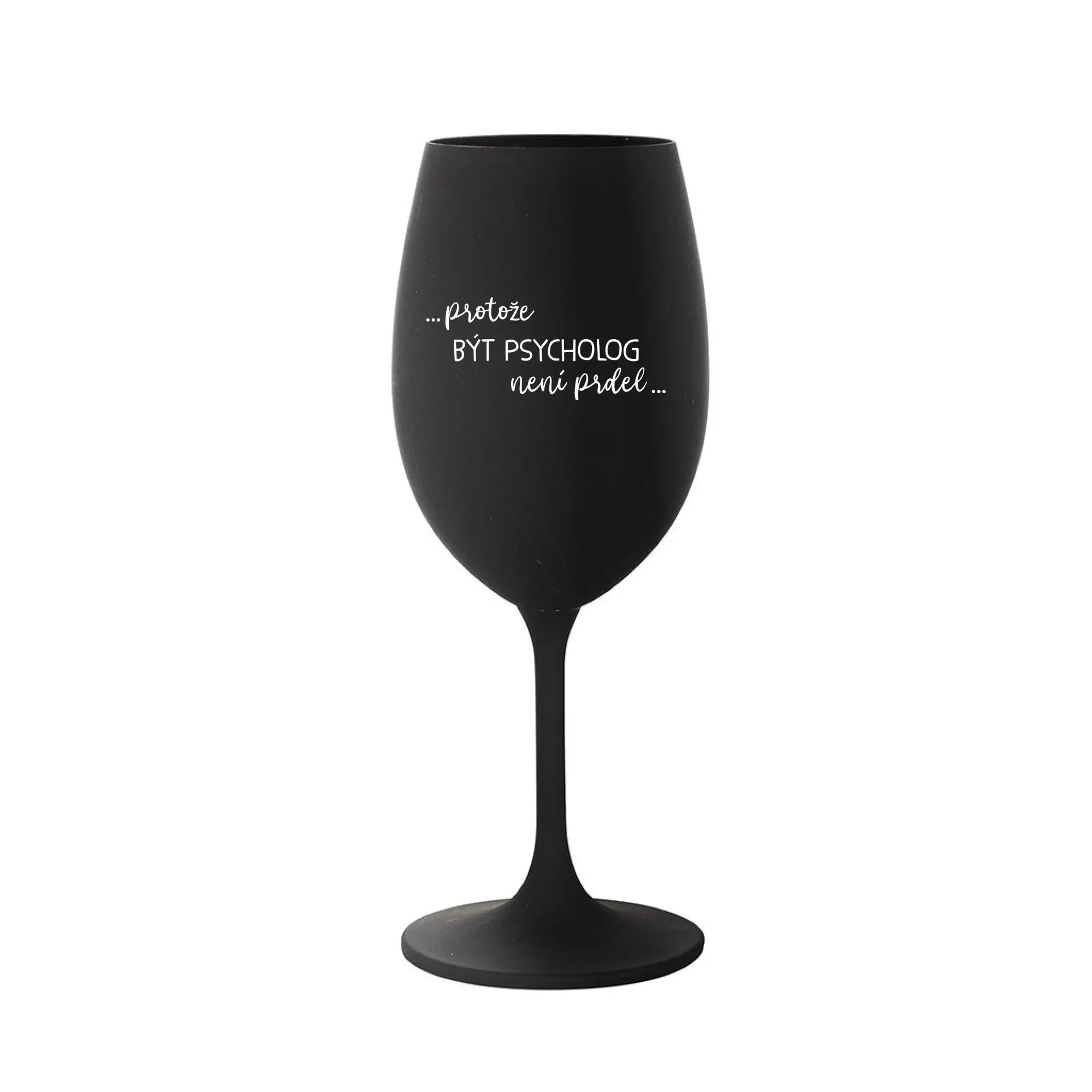 PROTOŽE BÝT PSYCHOLOG NENÍ PRDEL - černá sklenice na víno 350 ml