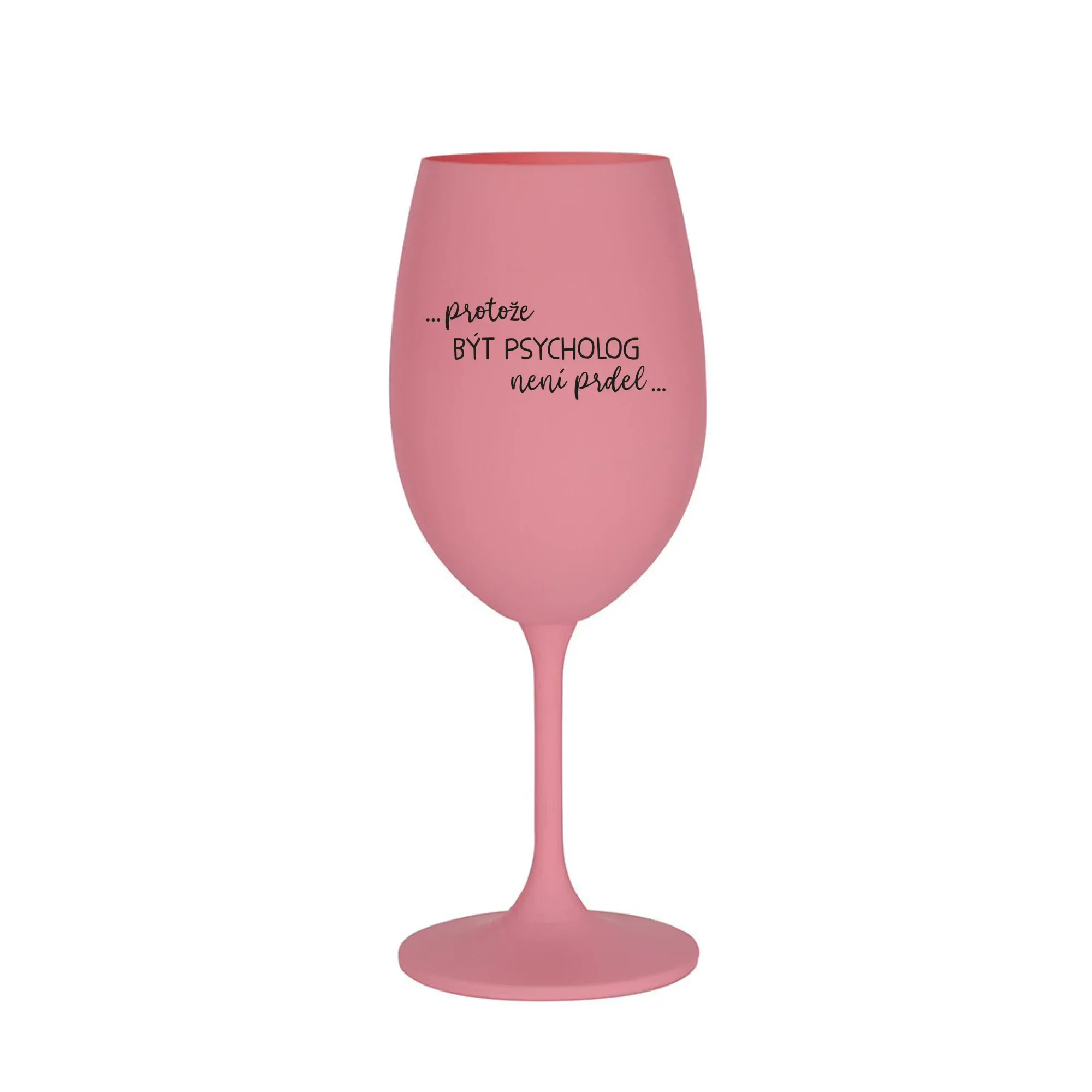 PROTOŽE BÝT PSYCHOLOG NENÍ PRDEL - růžová sklenice na víno 350 ml